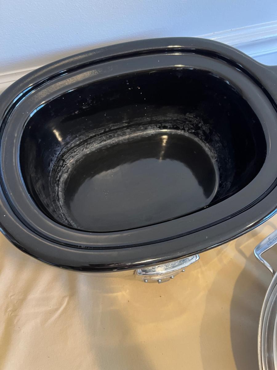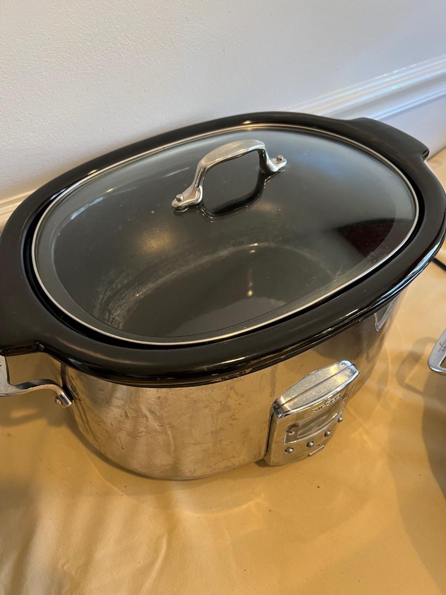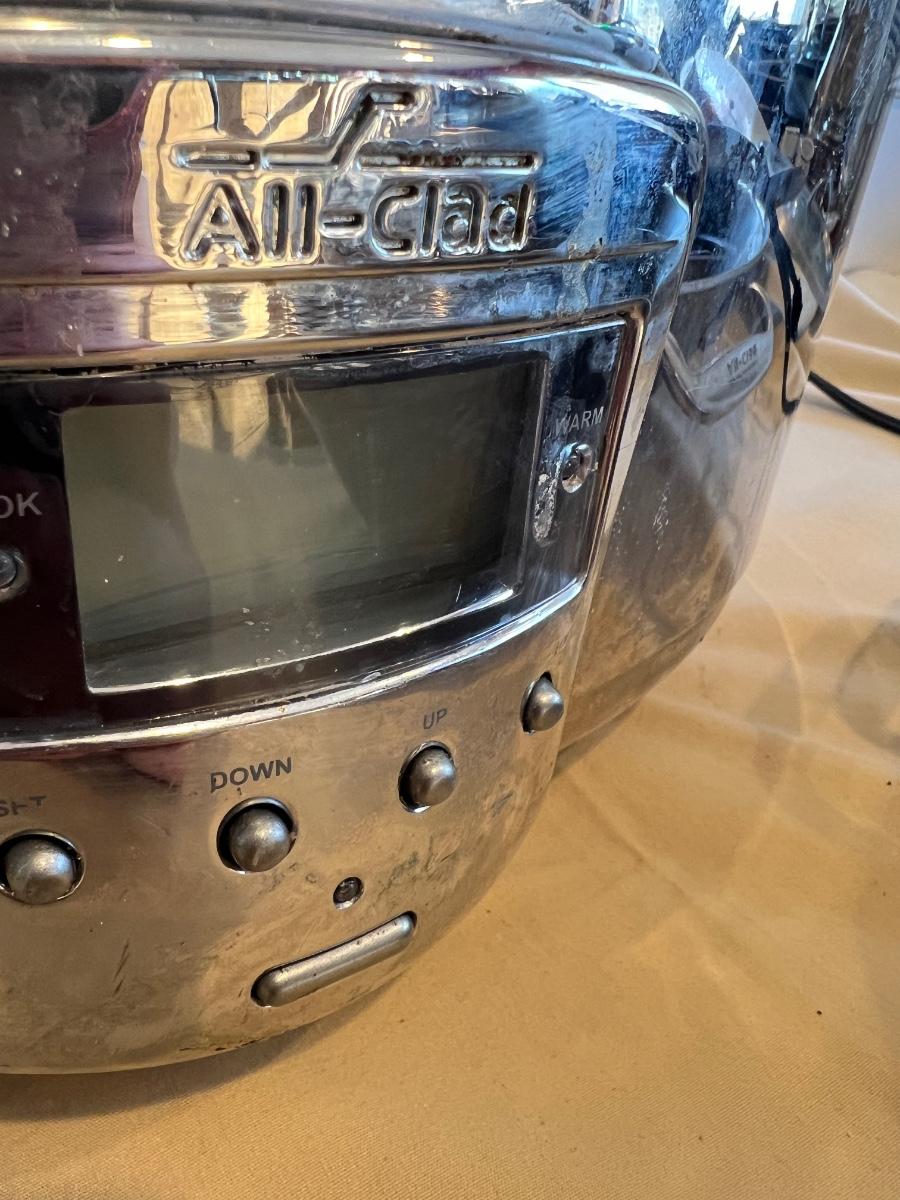 All Clad crock pot tested, turns on. Buying "as is - as found" in this wonderful estate. See ALL PHOTOS for content, condition, & dimensions. NEVER a Buyer's Premium or Credit Card Fee added.