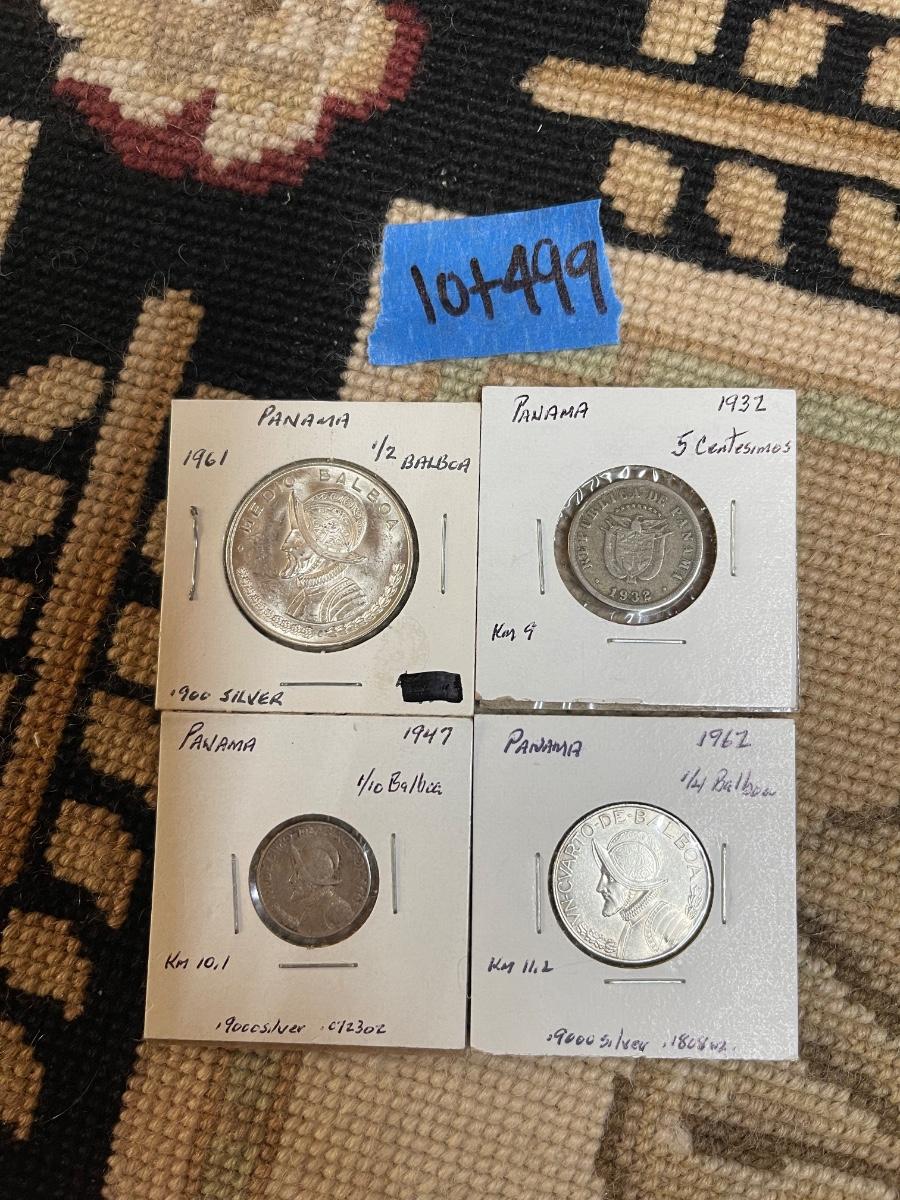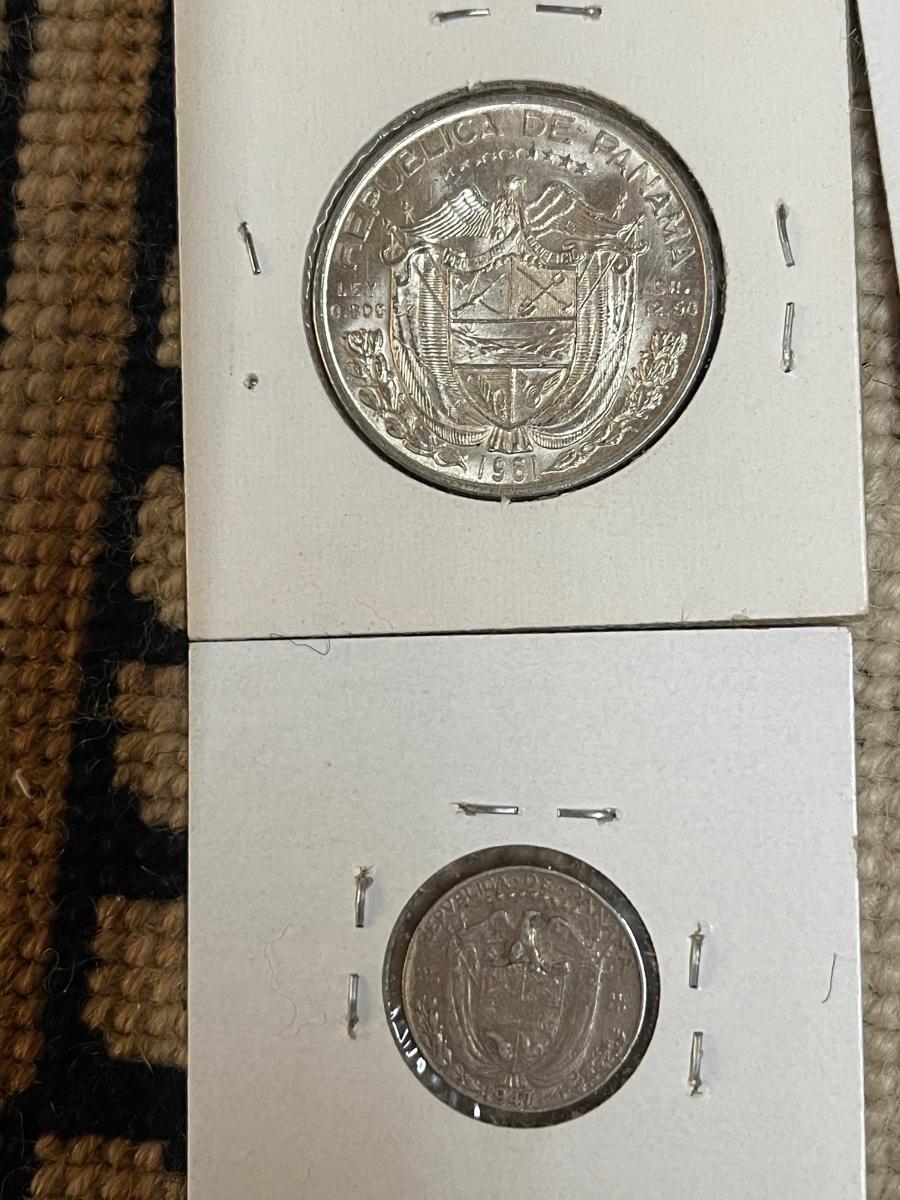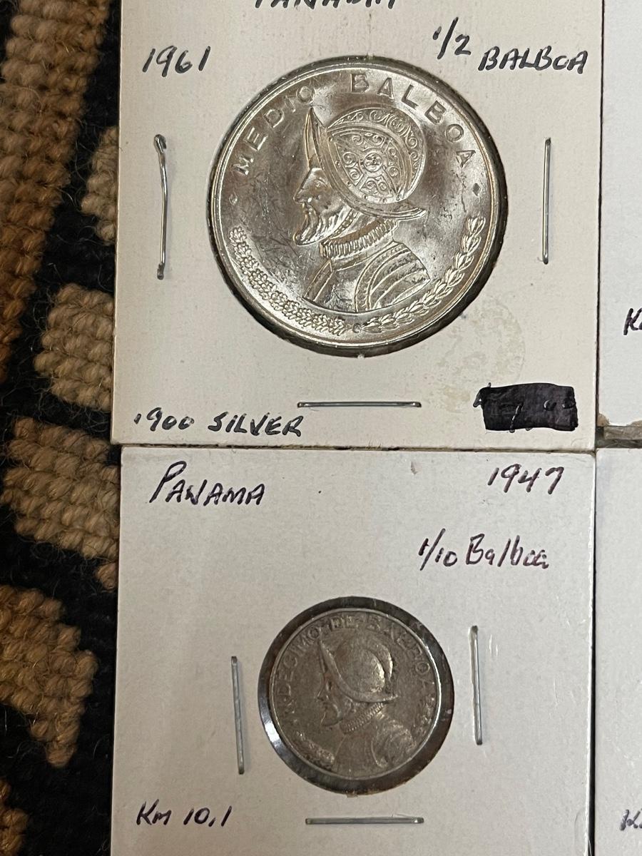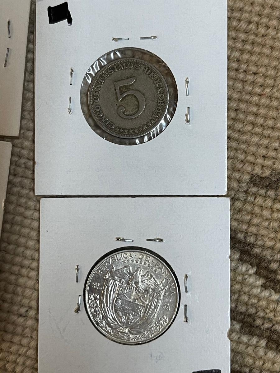 (4) vintage Panama coins - 1961 1/2 Balboa, 1932 5 centesimos, 1947 1/10 Balboa, 1962 1/4 Balboa.