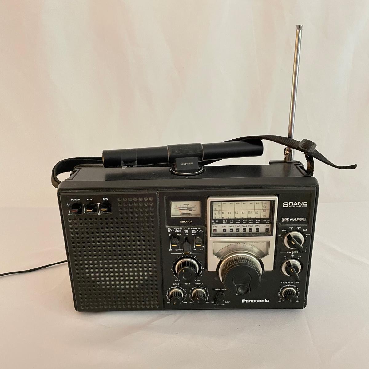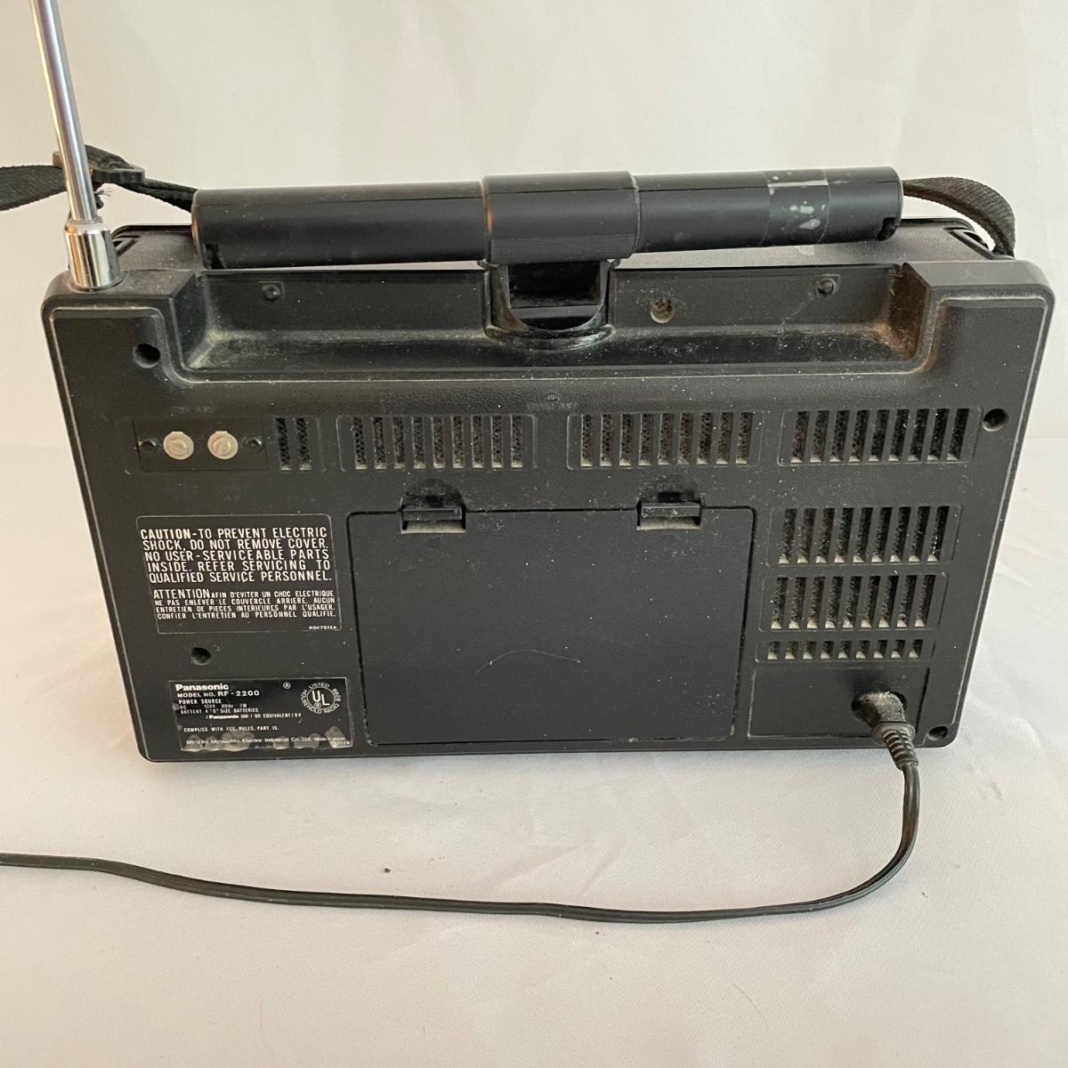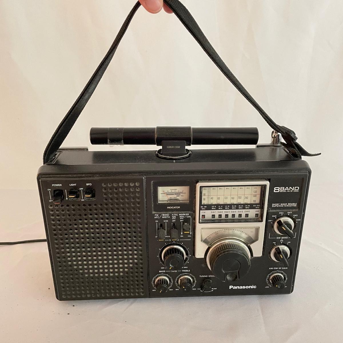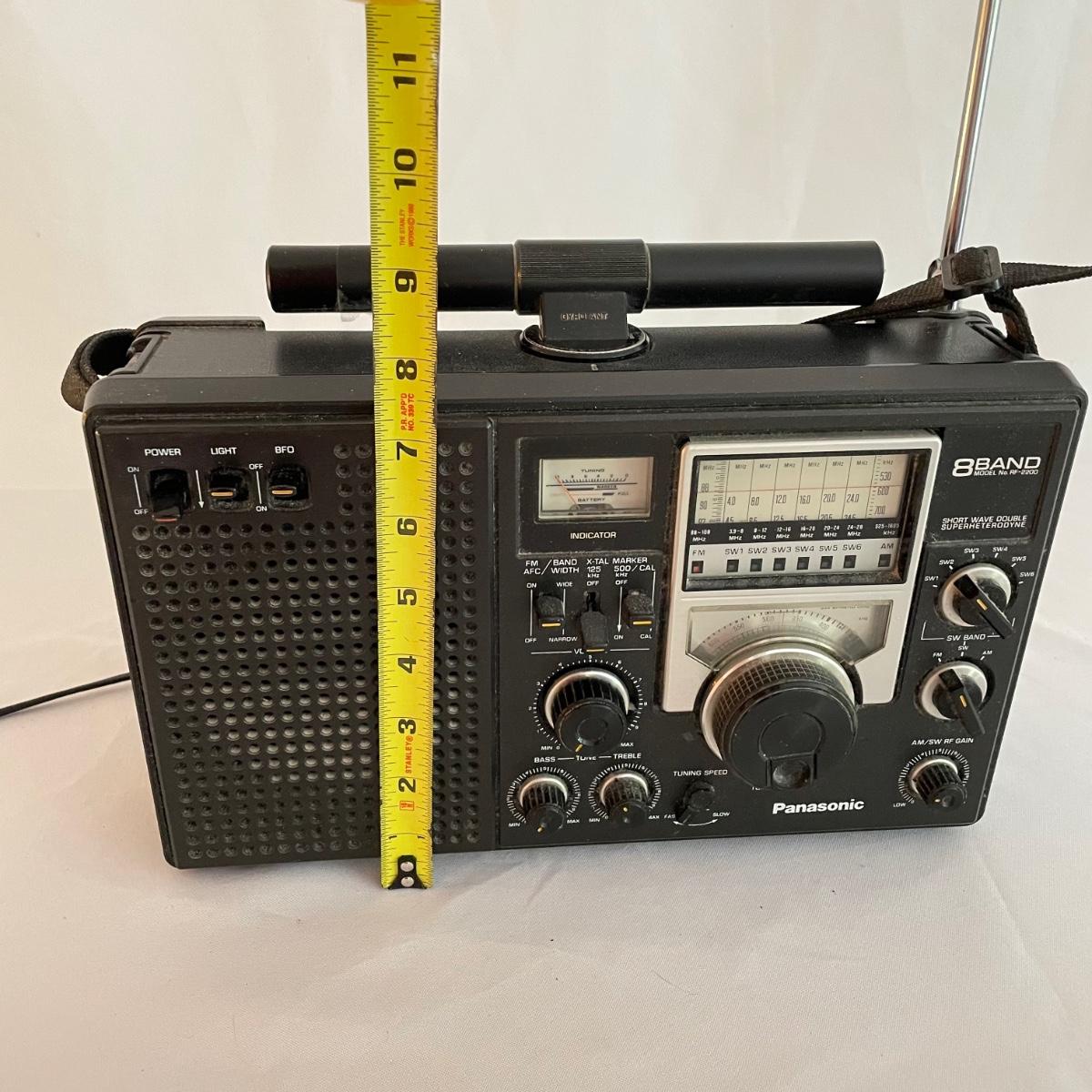 Panasonic 8Band Radio Model RF2200. Radio played music clearly when tested. Antenna is intact. Battery compartment holds four DD batteries, this feature was not tested, but appears to be clean and free of oxidization. See images. Shipping available.