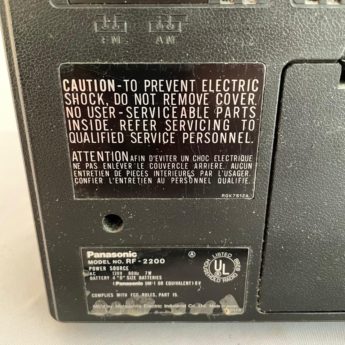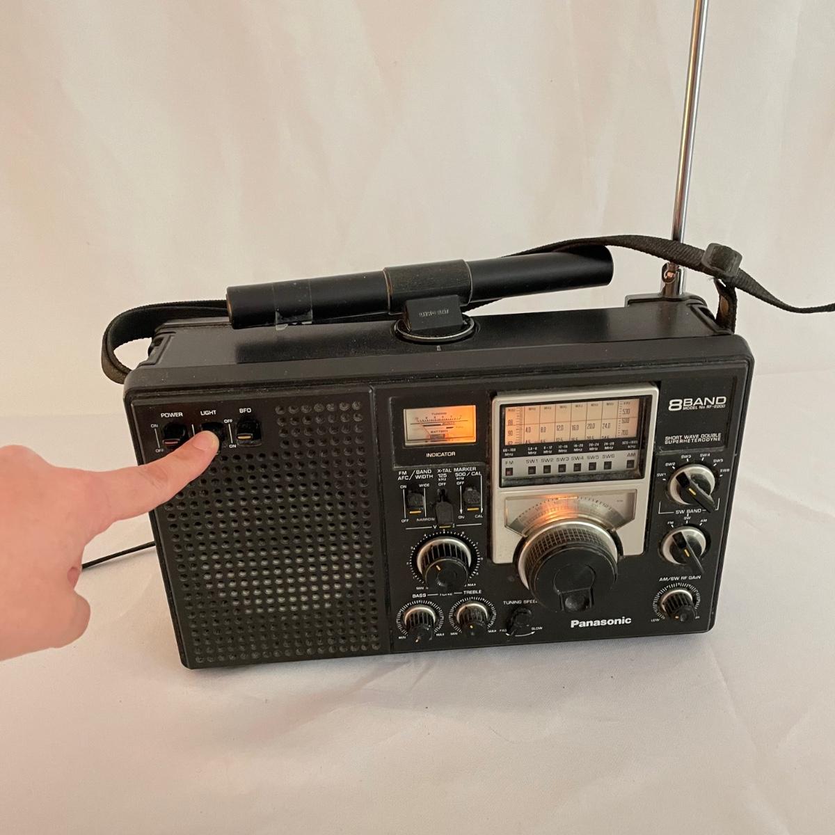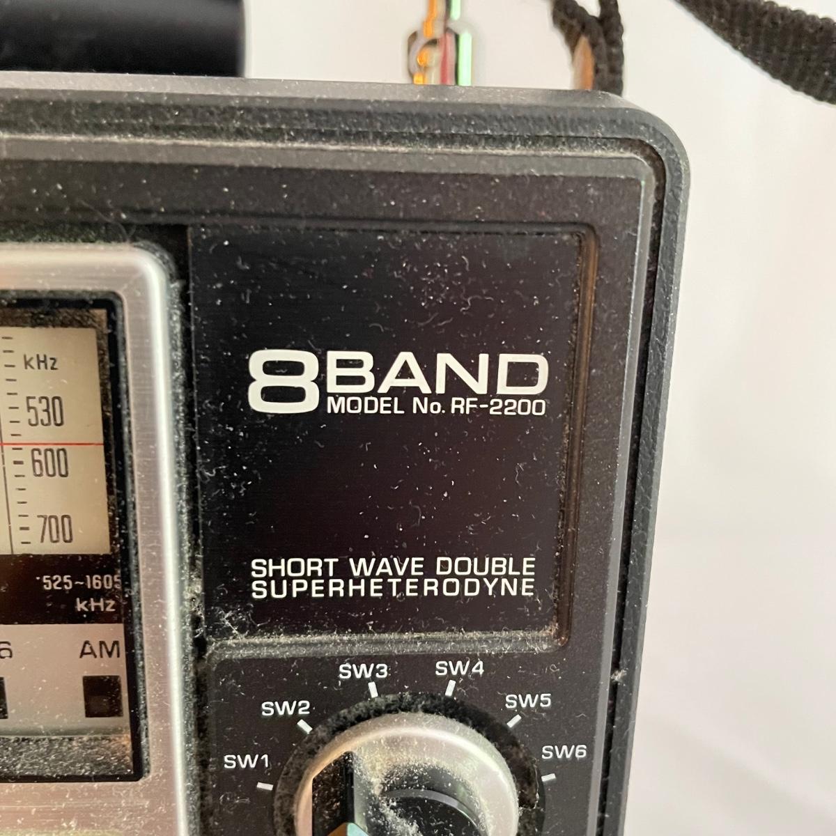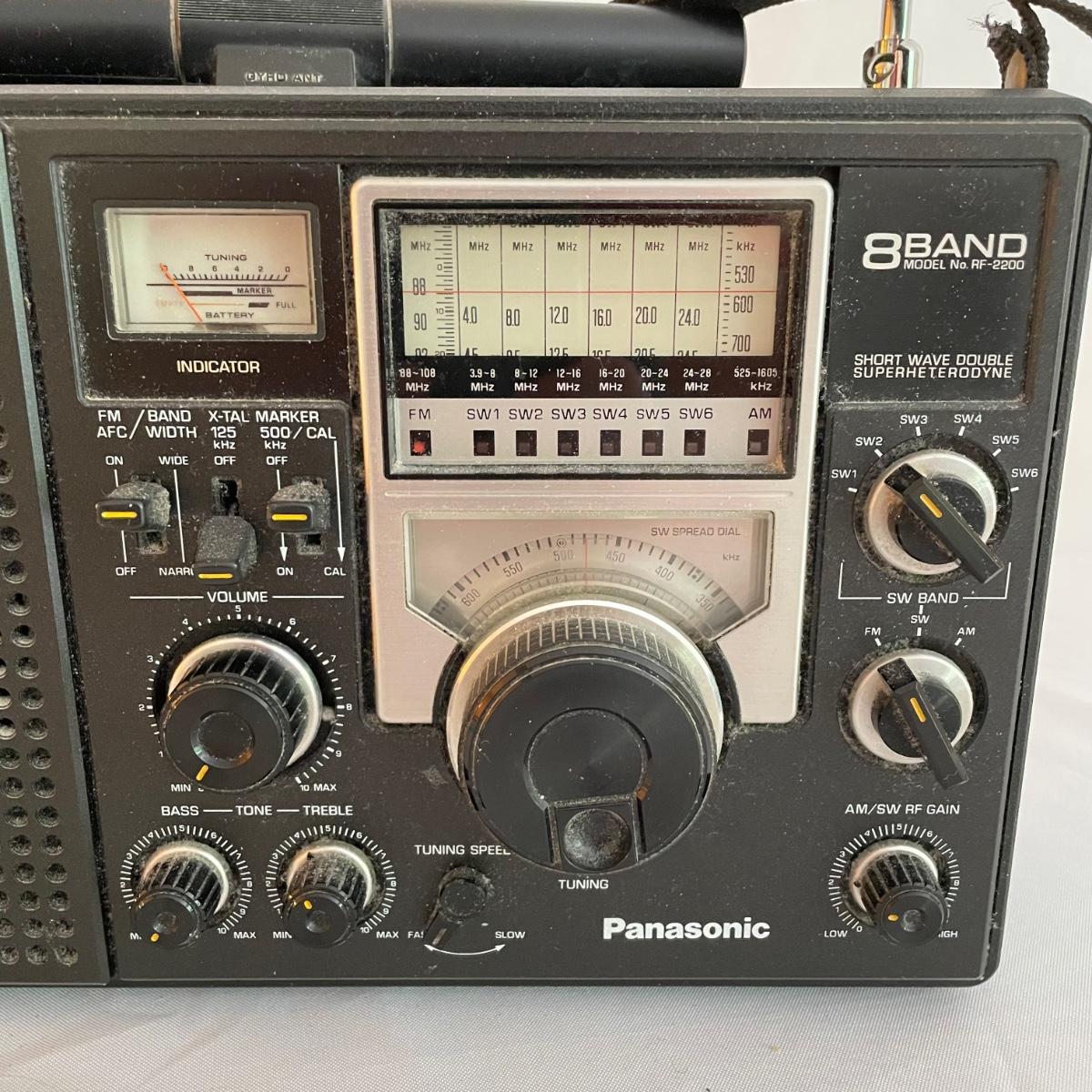 Panasonic 8Band Radio Model RF2200. Radio played music clearly when tested. Antenna is intact. Battery compartment holds four DD batteries, this feature was not tested, but appears to be clean and free of oxidization. See images. Shipping available.