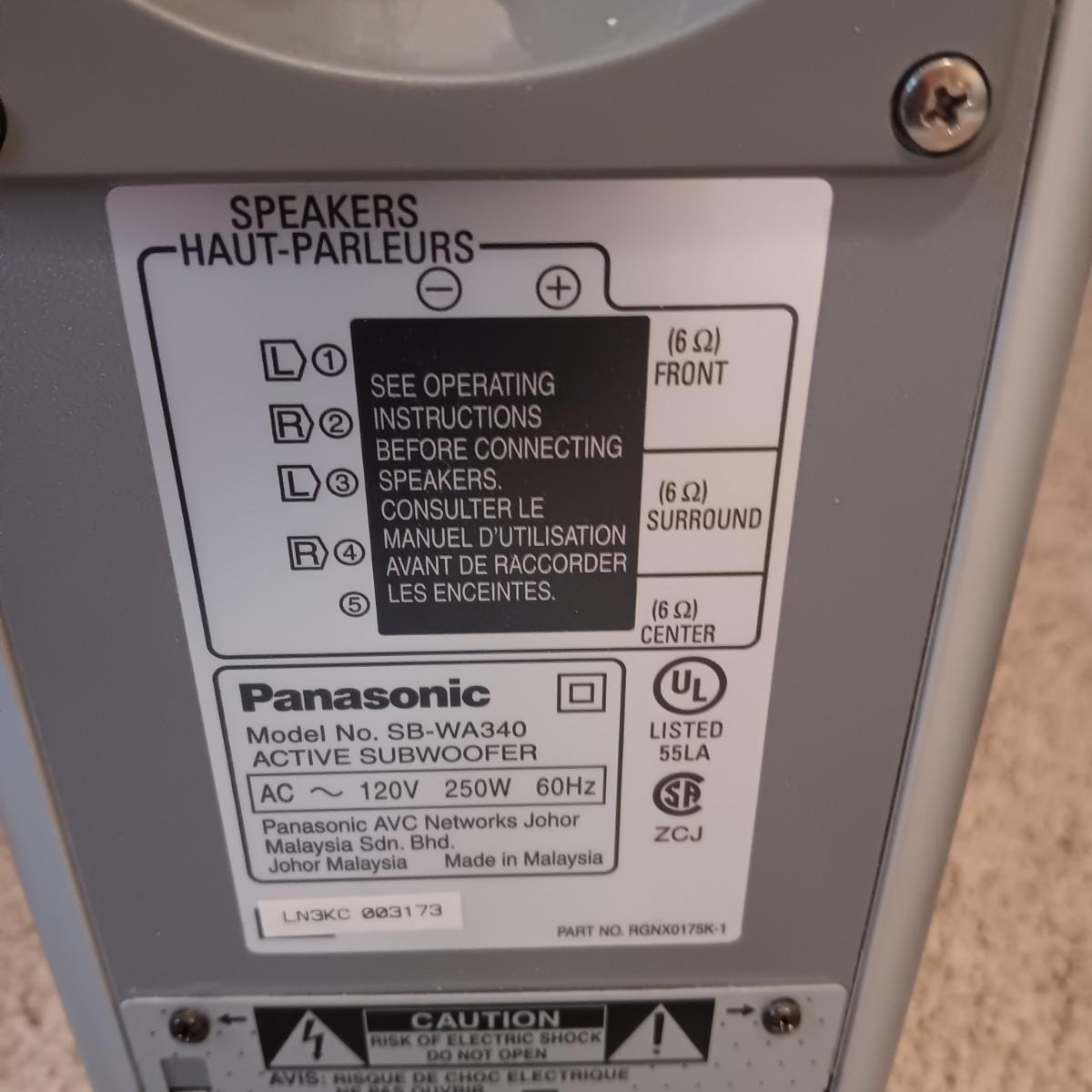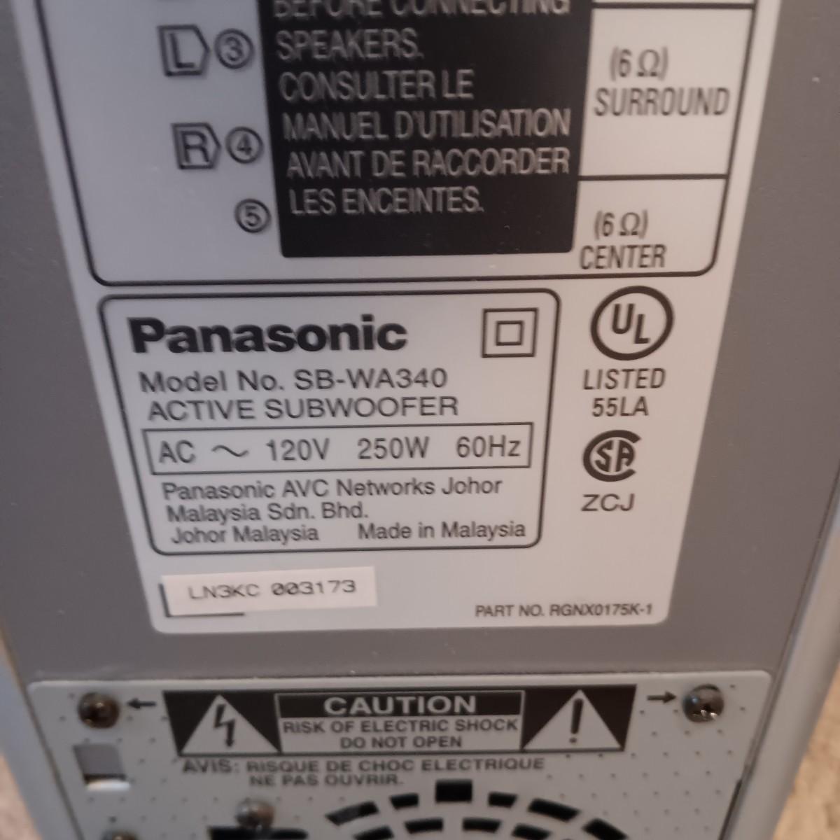 PANASONIC ACTIVE SUBWOOFER, SPEAKER AND 5 DISC HOME THEATRE SOUND SYSTEM