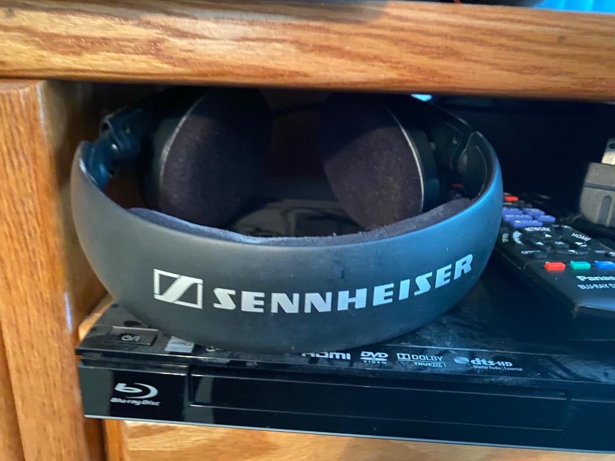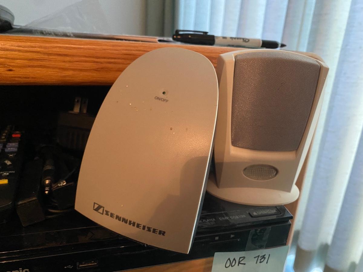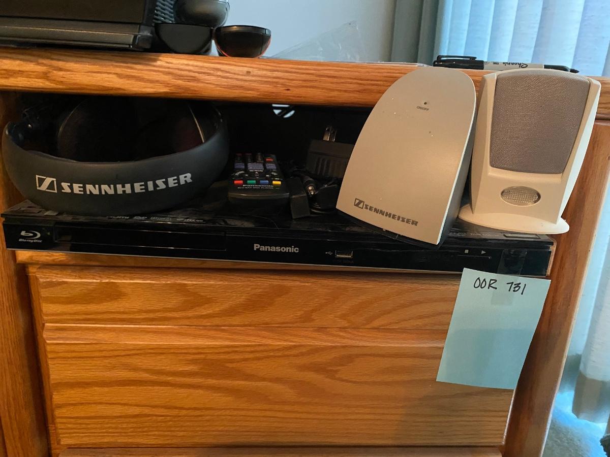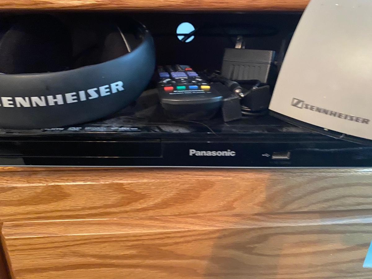 Panasonic blue ray DVD player, Sennheiser head phones and speaker.