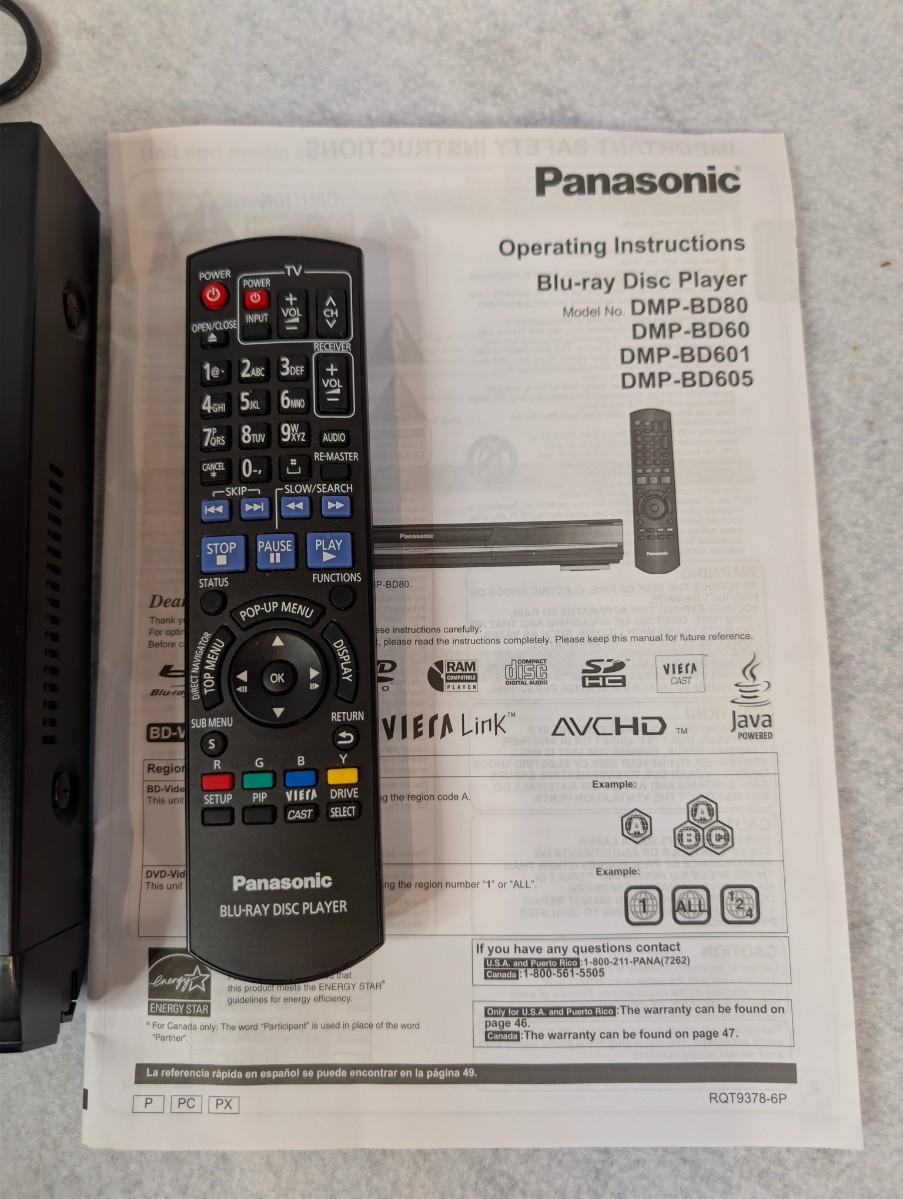 Panasonic Blue Ray Player w/ manual and remote Model: DMP-8D605