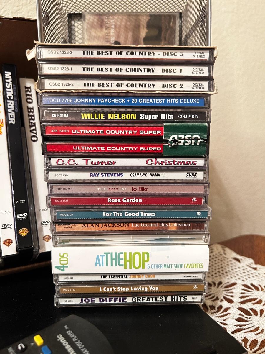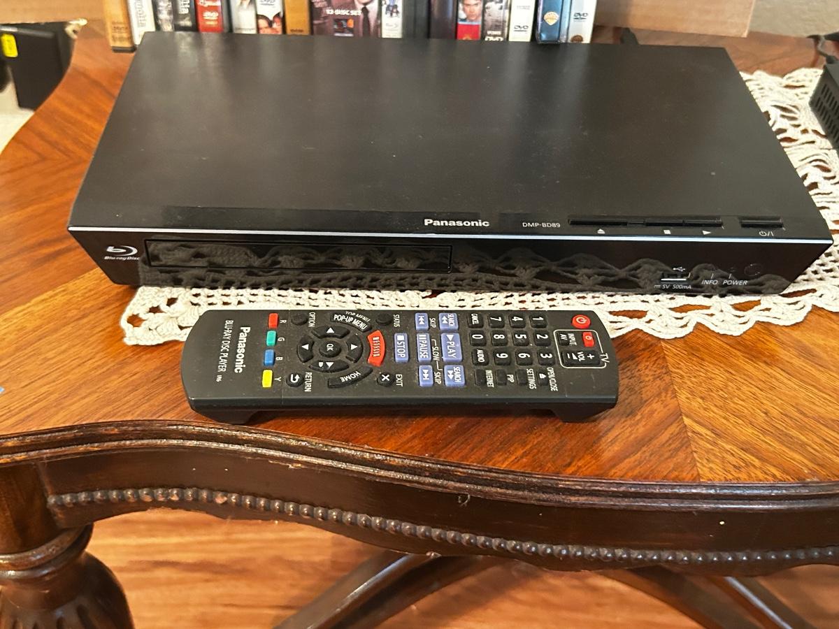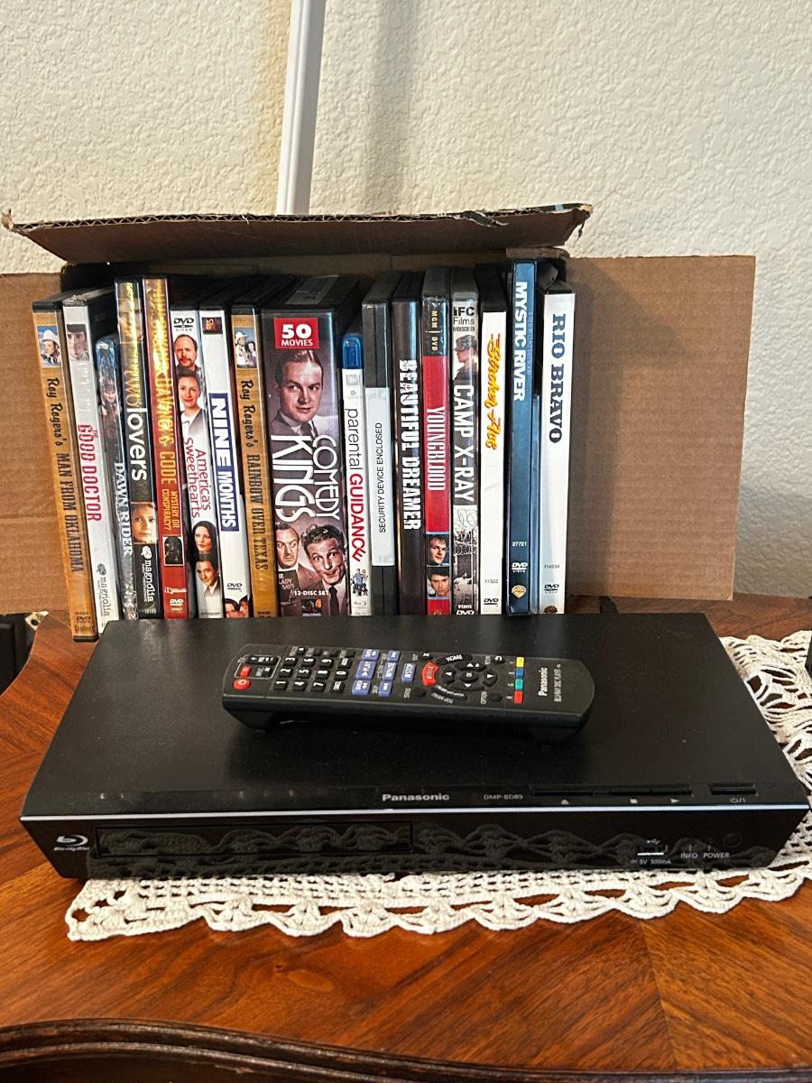 PANASONIC BLU-RAY DISC PLAYER W/REMOTE, DVD’S AND A VARIETY OF MUSIC ON CD’S