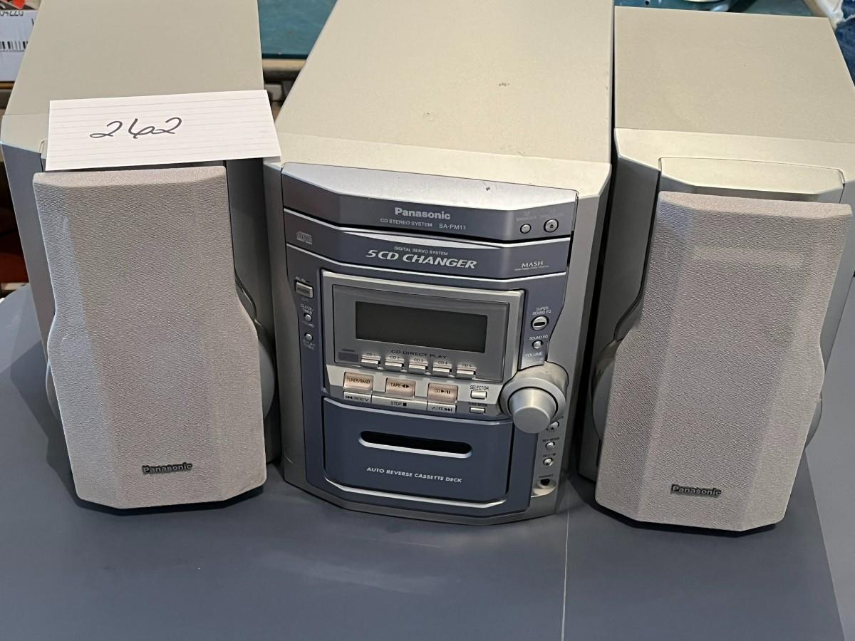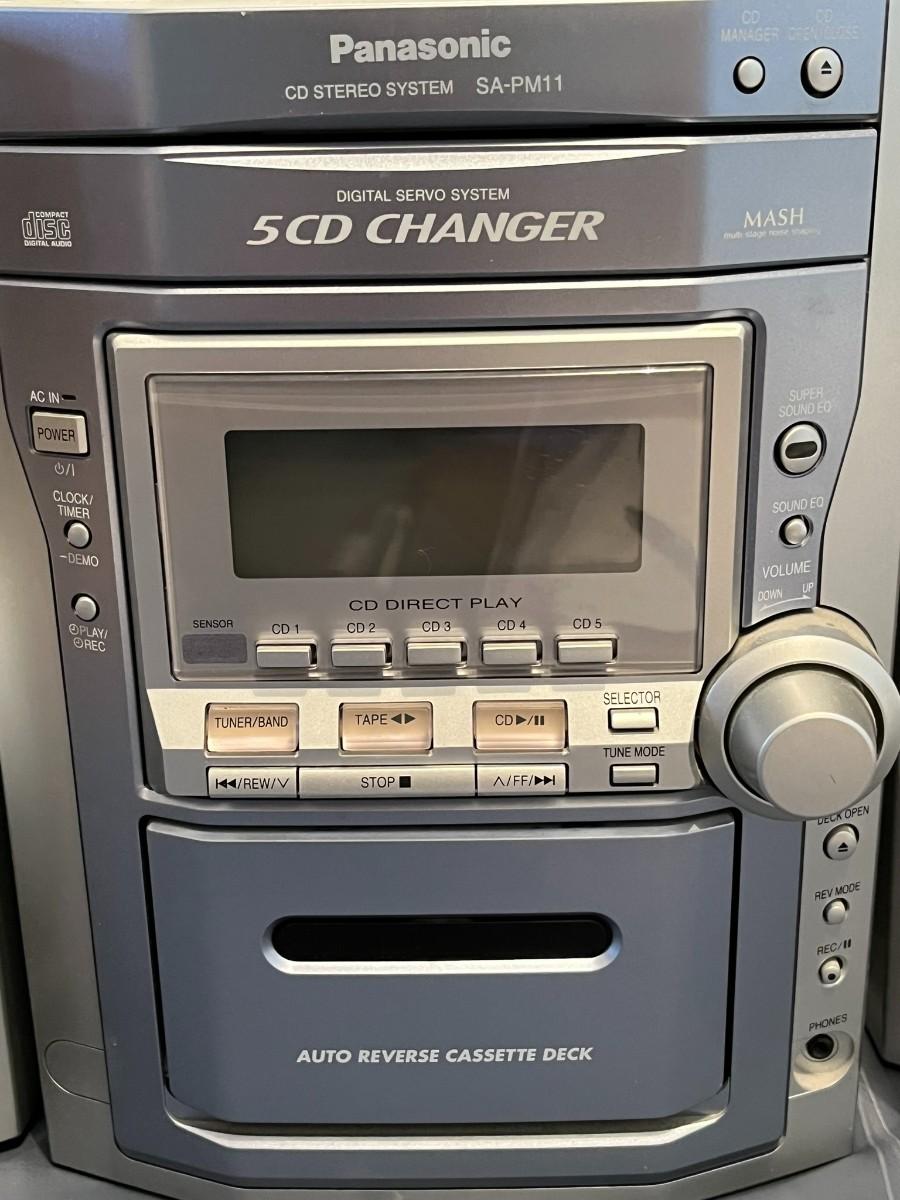 Panasonic CD Stereo System AM/FM 5-CD Changer Clock Timer Auto Reverse Cassette Deck, Super Sound EQ, MASH Multi Stage Noise Shaping
