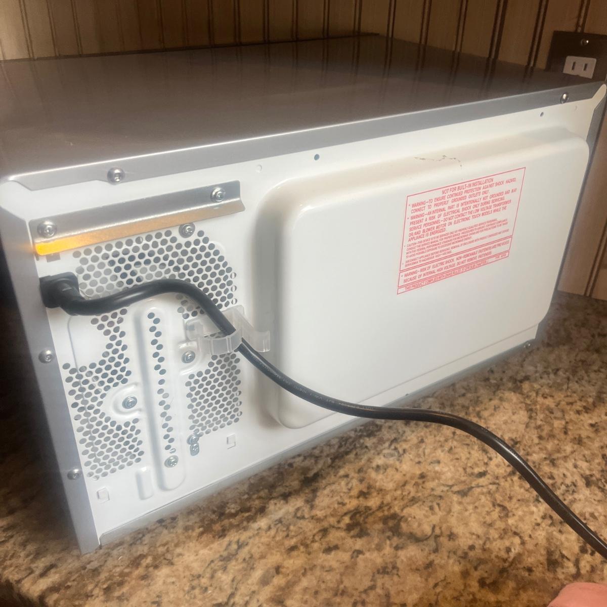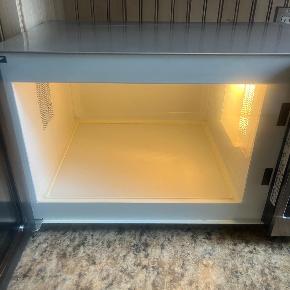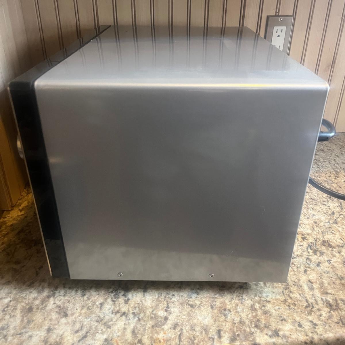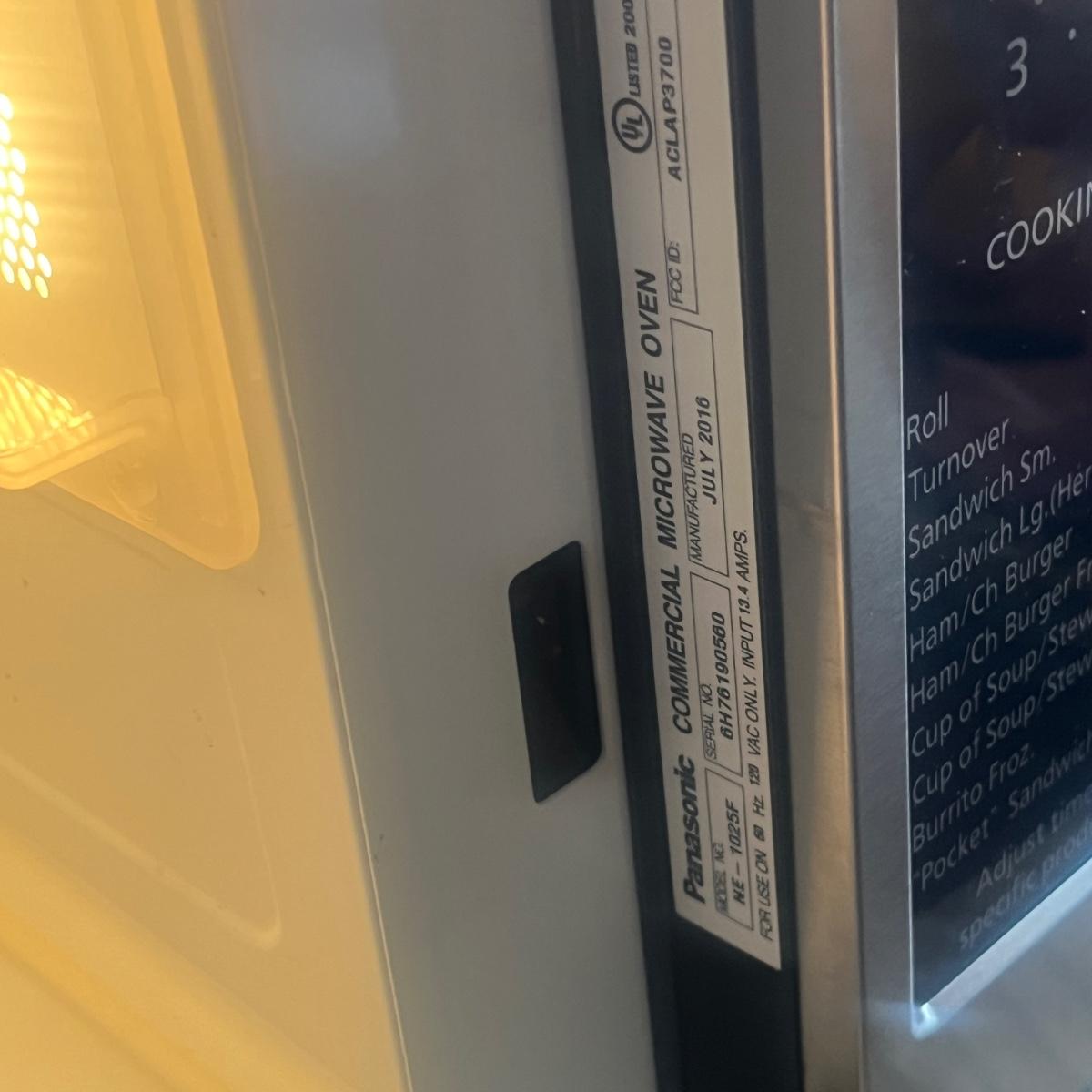 Lot includes a Panasonic commercial microwave oven with owners manual. Microwave measures 20” x 13” x 12”H. Microwave powered on when plugged in.