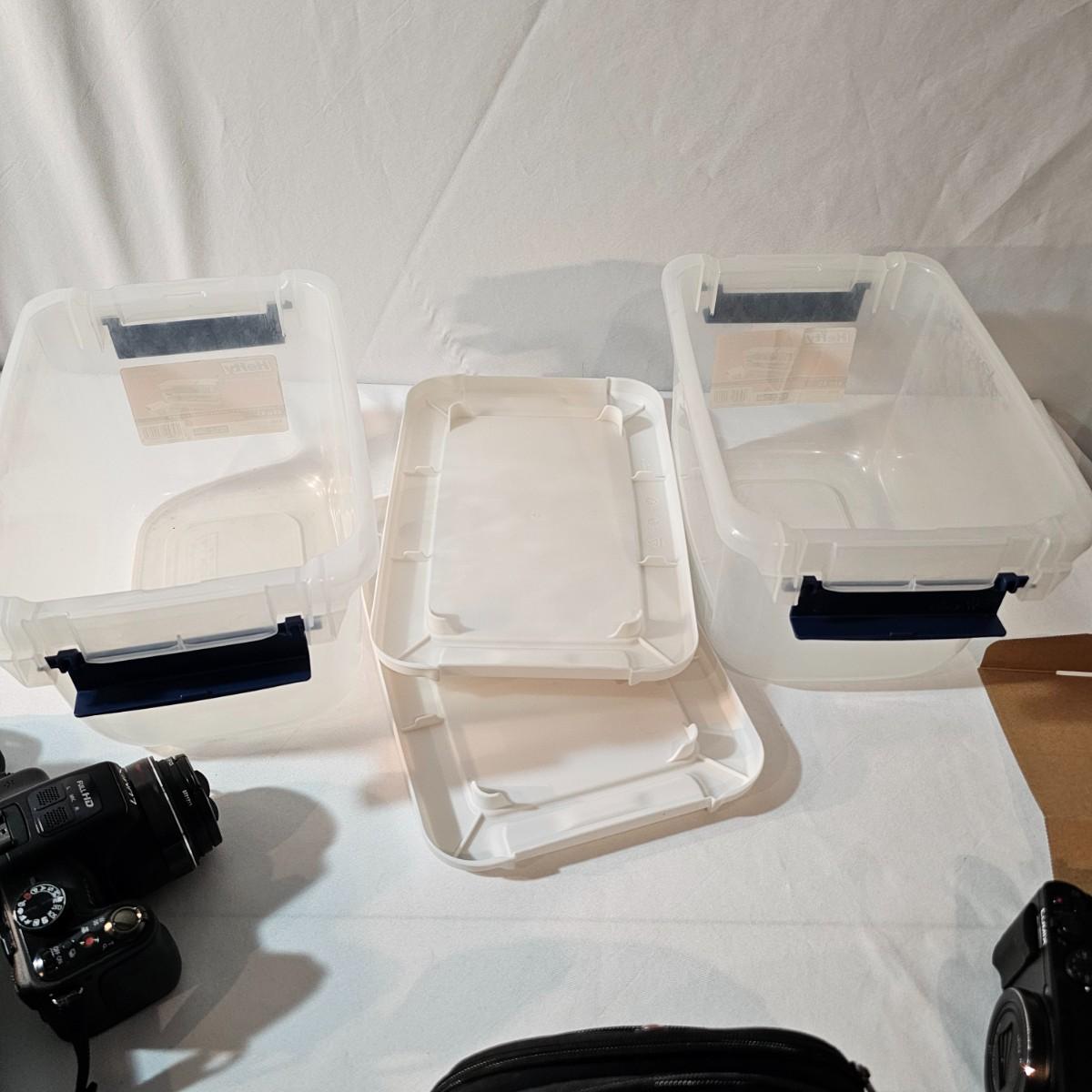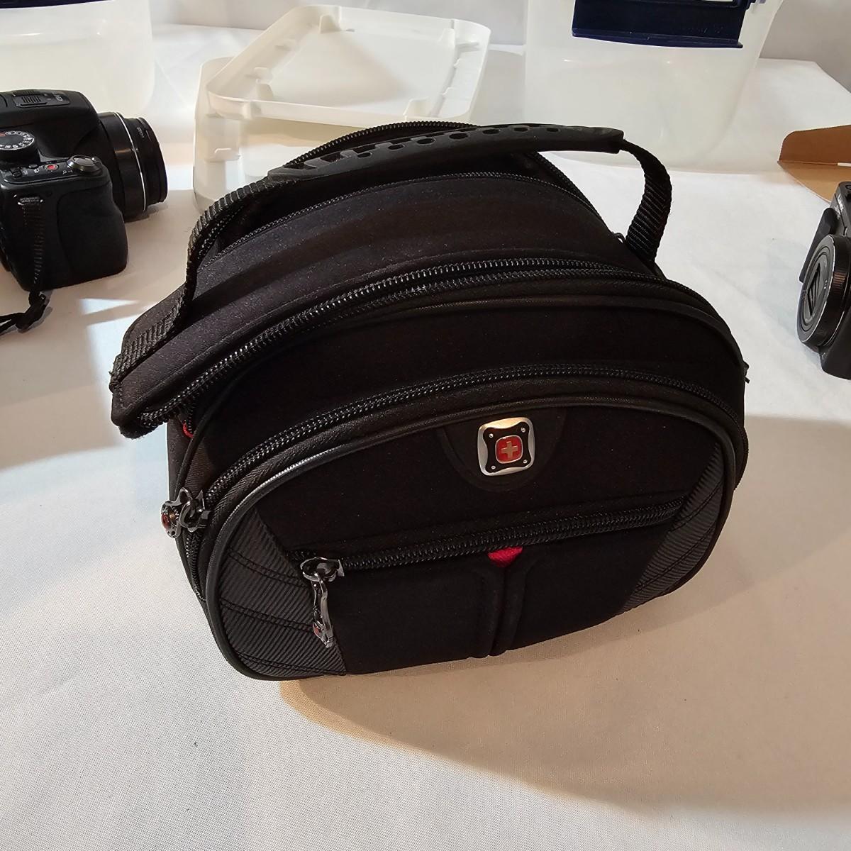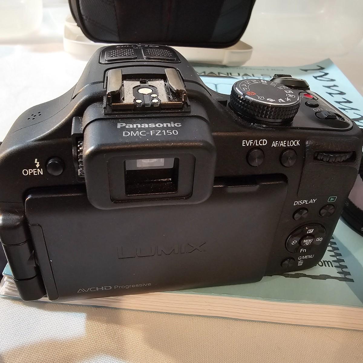 Two digital cameras and accessories. One Panasonic Lumix DMC-FZ150 with 24x optics zoom and swing out viewscreen. Includes four batteries and charger + case. Uses standard SD style memory cards. Also one Panasonic Lumix DMZ-ZS60 digital camera with Leica lens. Three batteries and charger plus soft case. One Pixel Oppilas wireless remote control with case and instructions. Also a spiral bound manual for the cameras. Both cameras powered on. See photos for details. Shipping available.