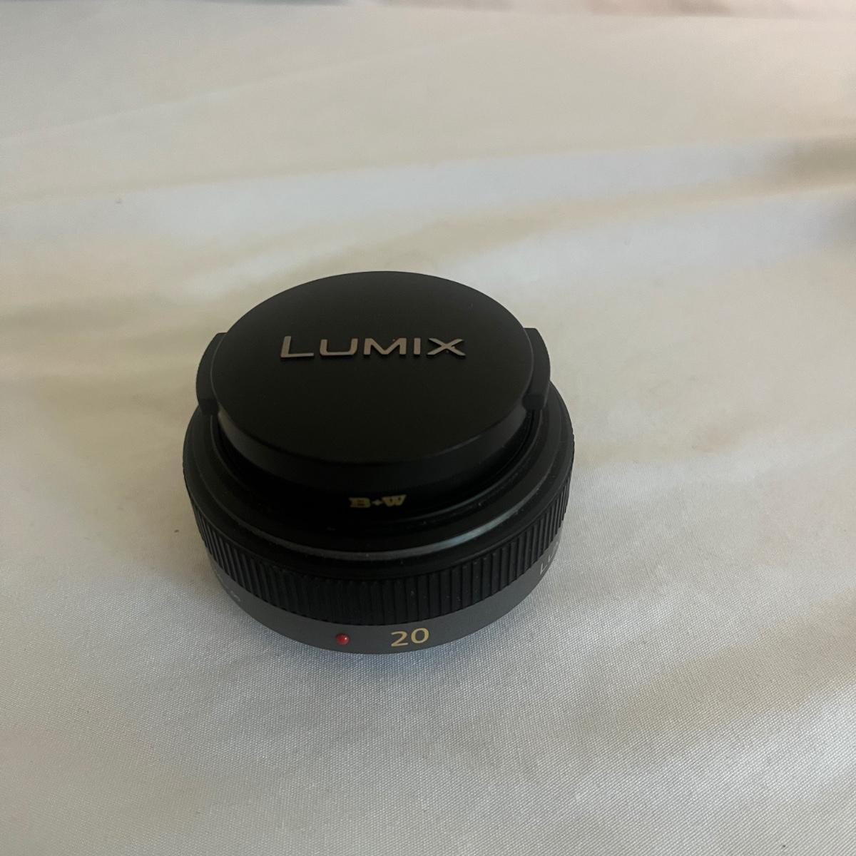 Lot includes a Panasonic H-H020 LUMIX lens with a B&W filter. Lens measures 2.5"D x 1.5"H.