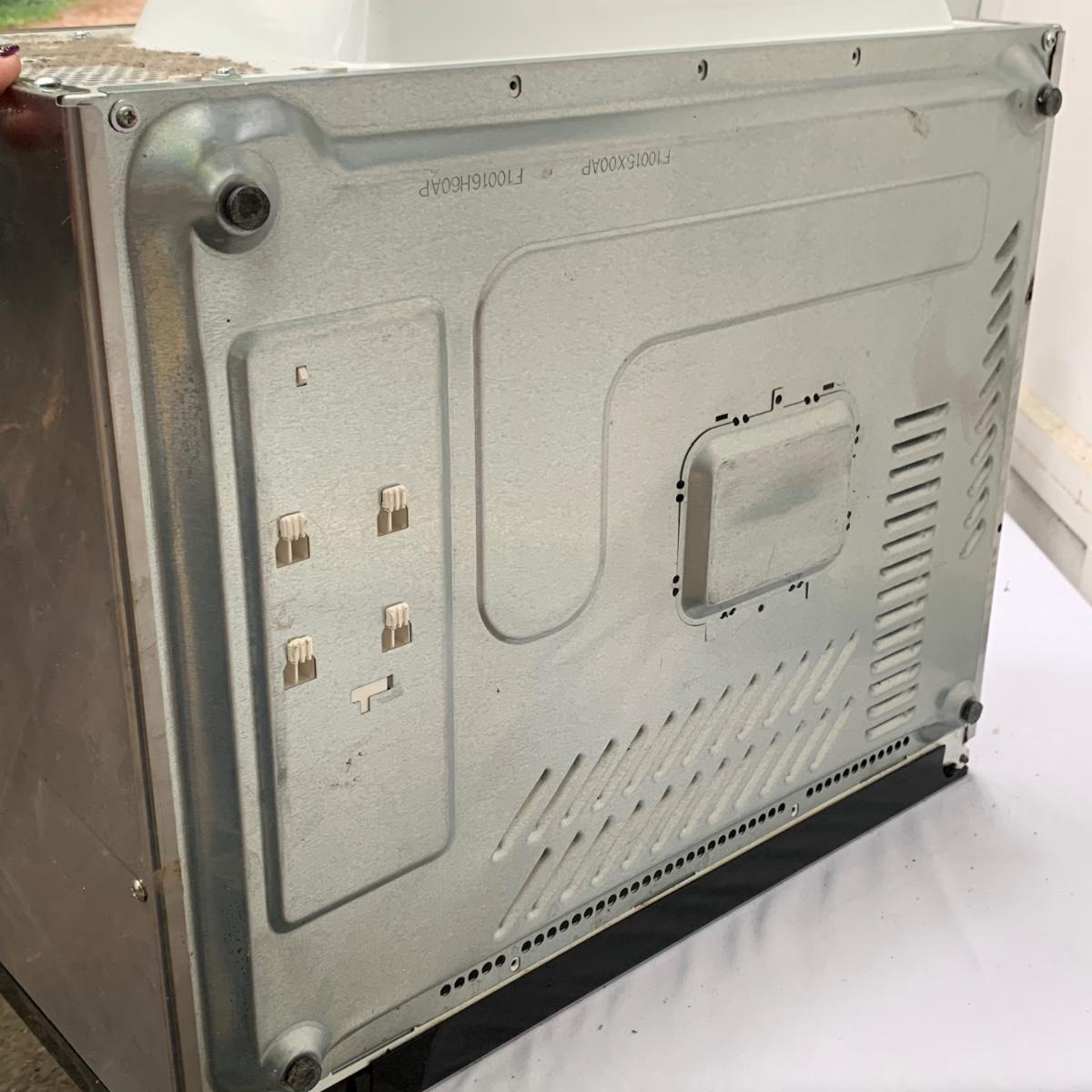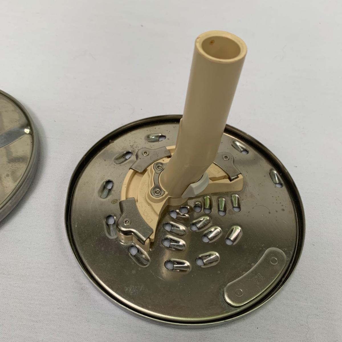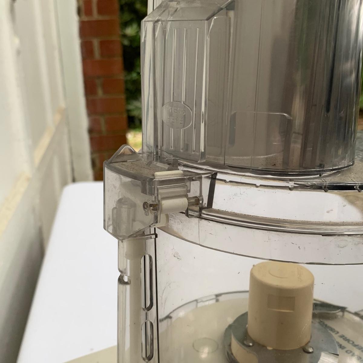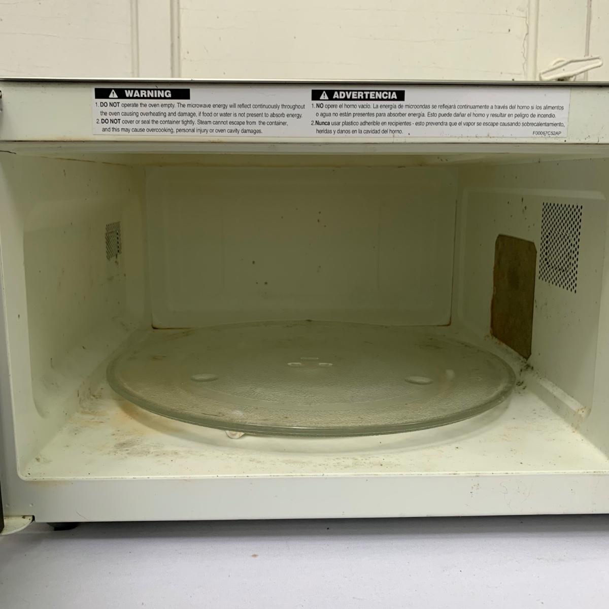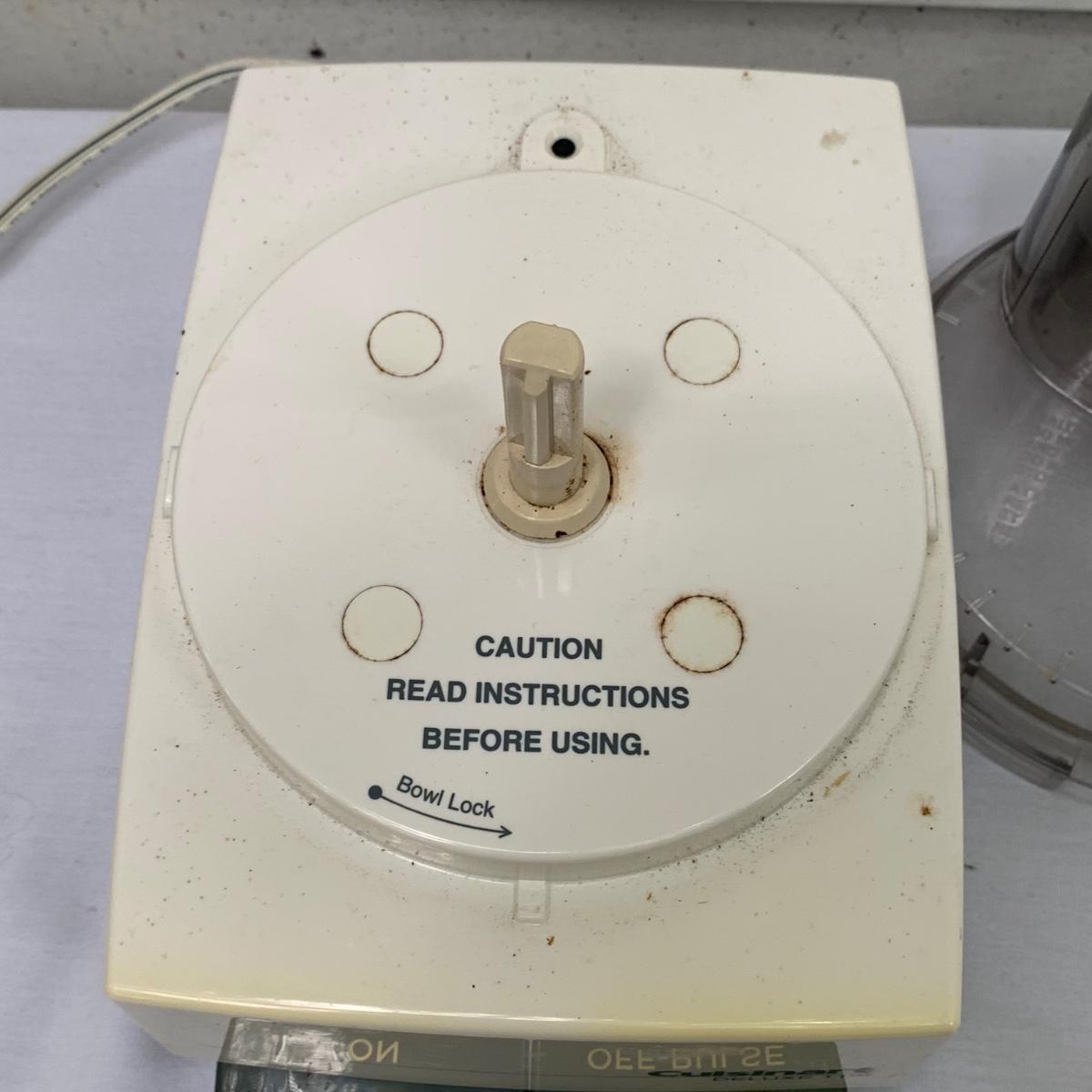 Panasonic Genius Prestige Household Microwave Oven, Model No. NN-SN789S. Functioned when tested. The outer shell is a silver colored metal. It measures 22” x 18” x 11”. The inside needs a deep cleaning. The outside is in good condition structurally, with some small scratches on the surface. It has a three-pronged electric plug. The food processor is a Cuisinart Deluxe 11, Model DFP-11 TX (Type 28). It comes with four different blades. The food processor functioned when tested. It has a two-prong electric plug. Local pickup only.