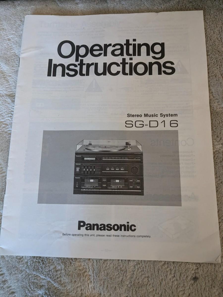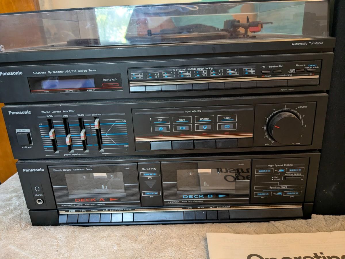 Panasonic Music Stereo System SG-D16 Dual Cassette AM FM Synthesizer & Speakers