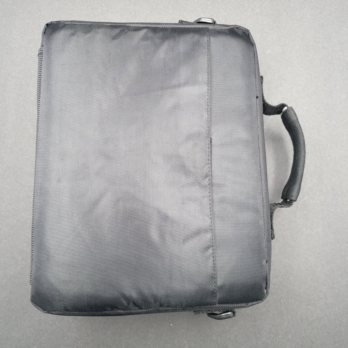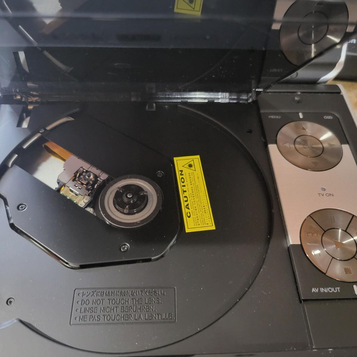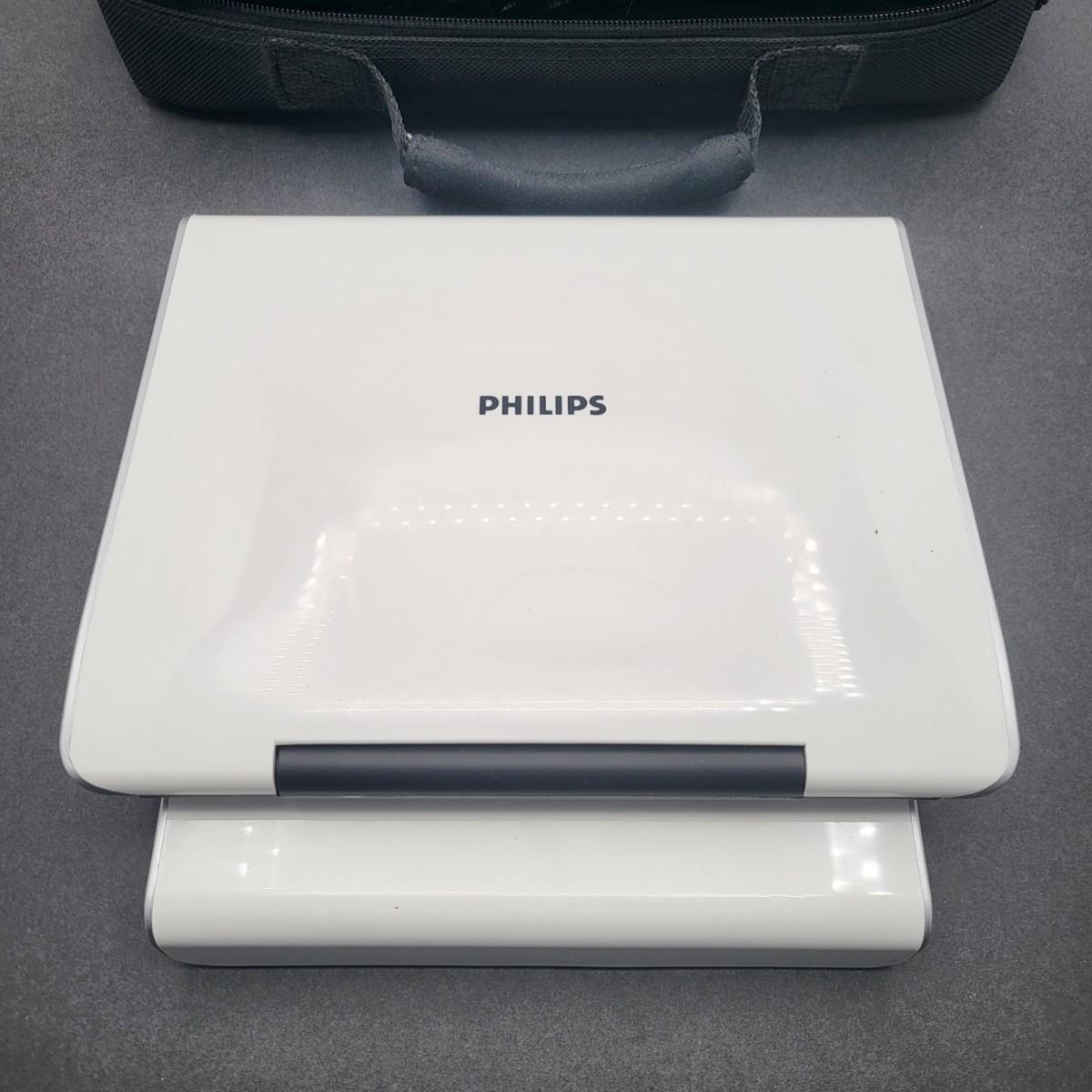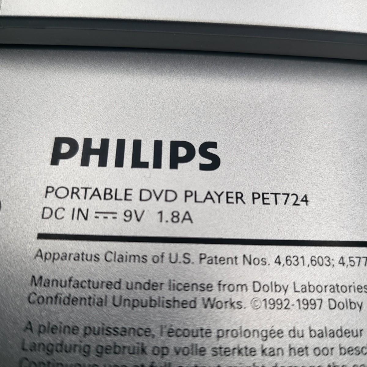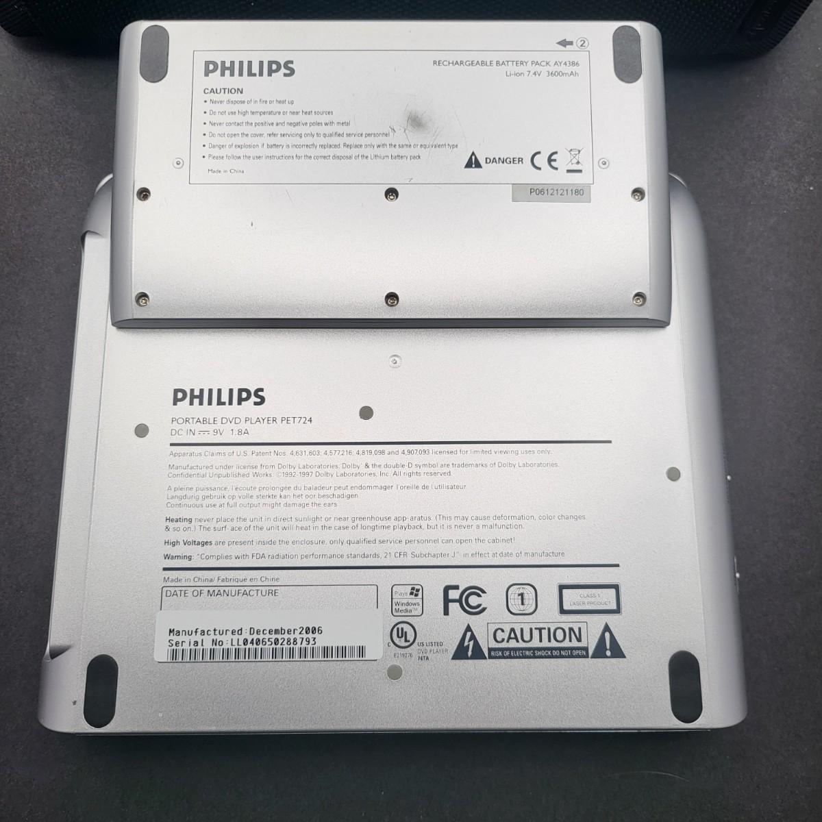Powers on. DVD Player also comes with owners manual, headphones, electrical plug in, rechargeable battery pack , remote and Targus nylon storage bag.