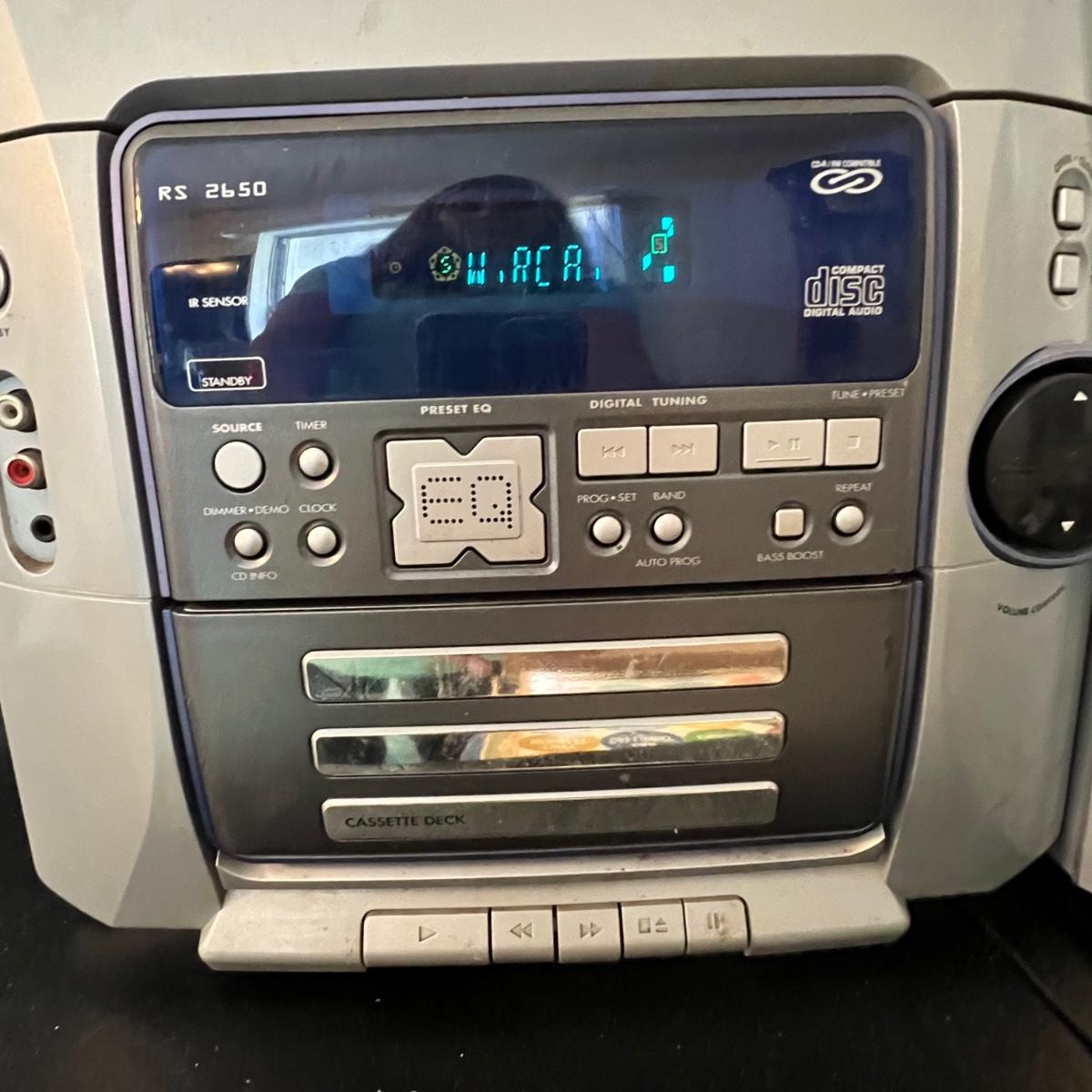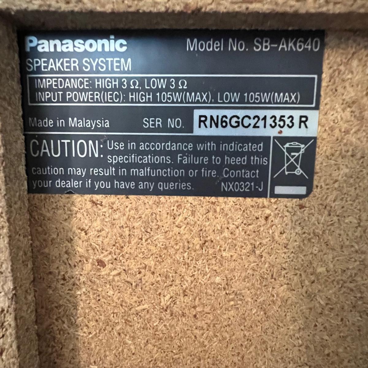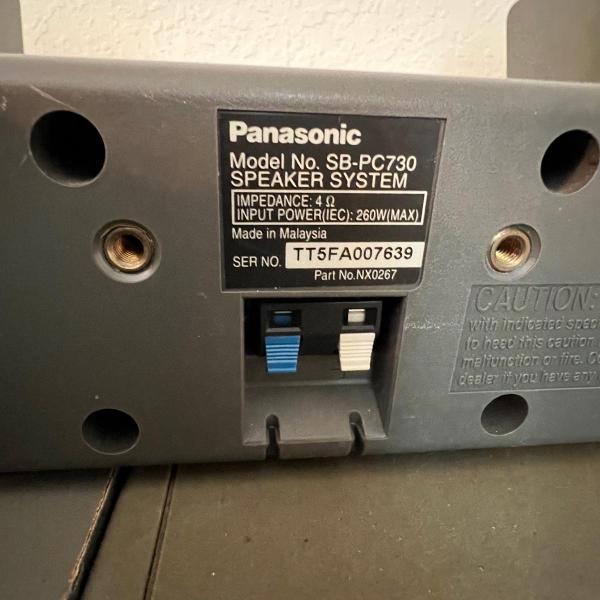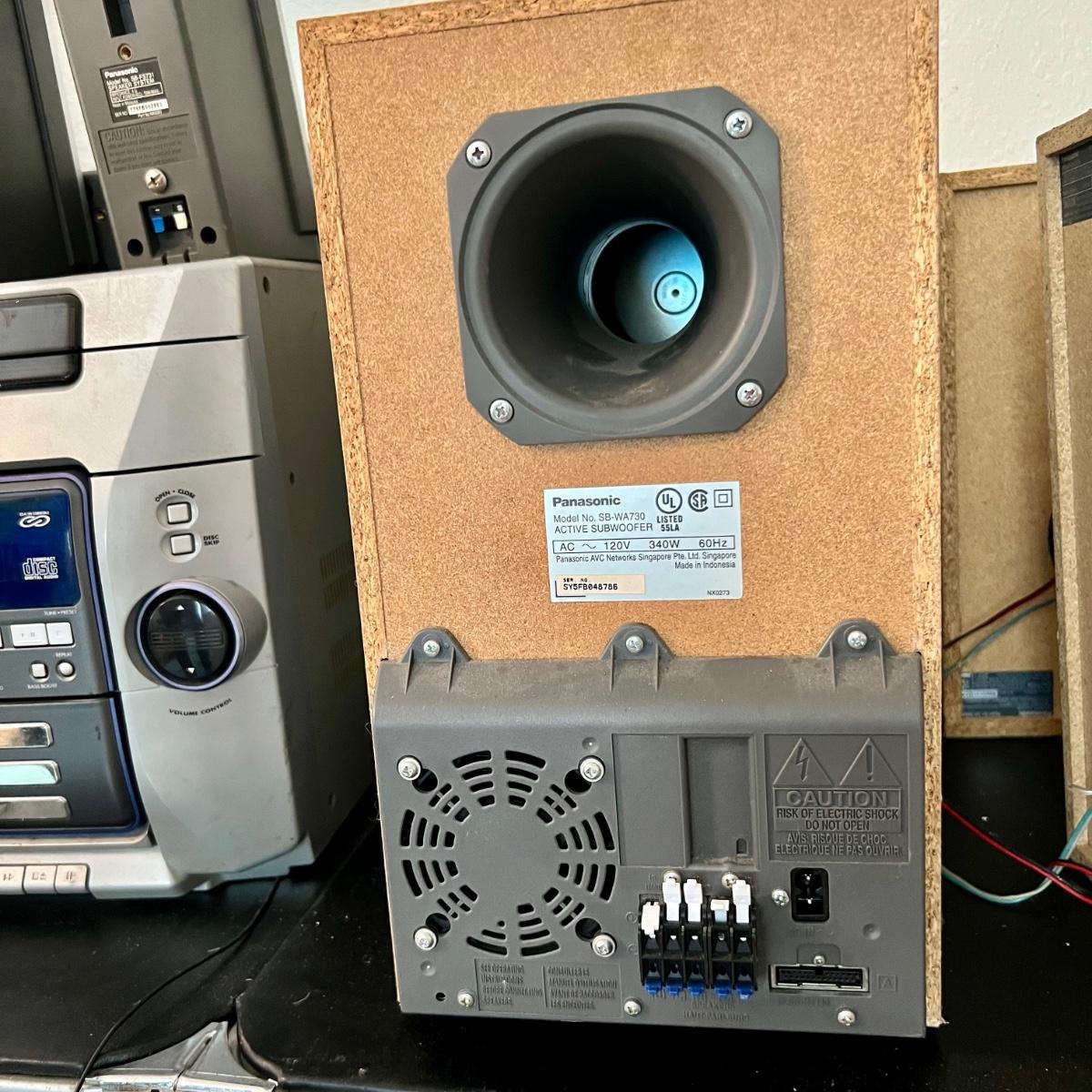 Lot includes Set of three Panasonic Speakers (SB-FS731), and one Subwoofer (SB-WA730). One pair of Panasonic and one pair of RCA Speakers. RCA 5Disc CD Changer powers on but sticks when opening.