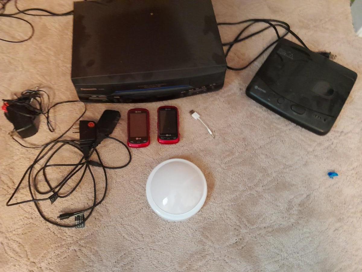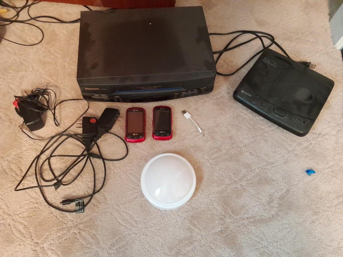 PANASONIC VHS PLAYER, KINYO VHS REWIND, AND OTHER SMALL ELECTRONICS