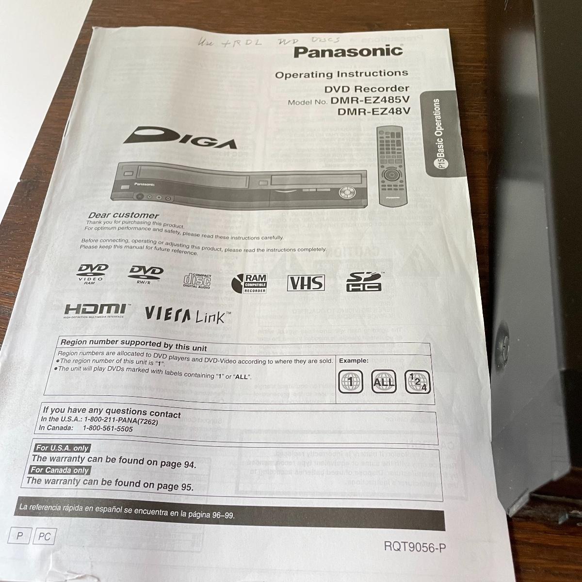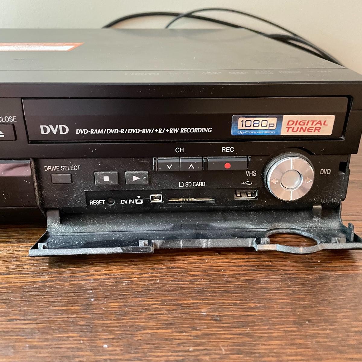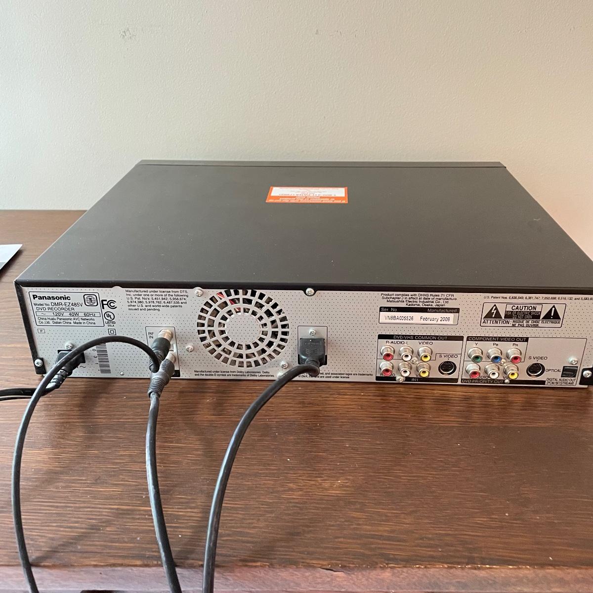 Panasonic DVD Recorder model DMR-EZ85V. Machine turned on and ejected dvd tray when prompted. See images. Lot includes HDMI cord, power adapter and two cable cords. Shipping available.