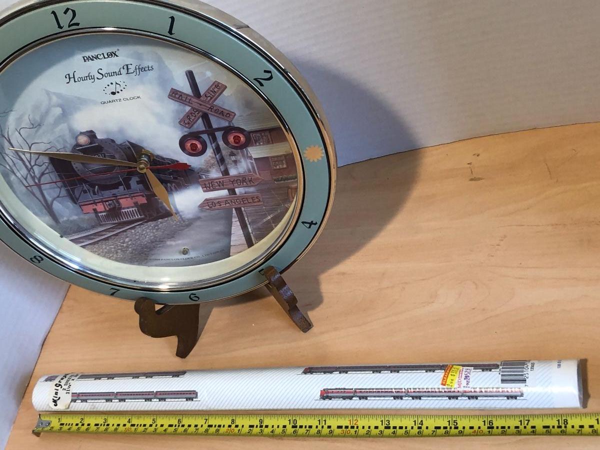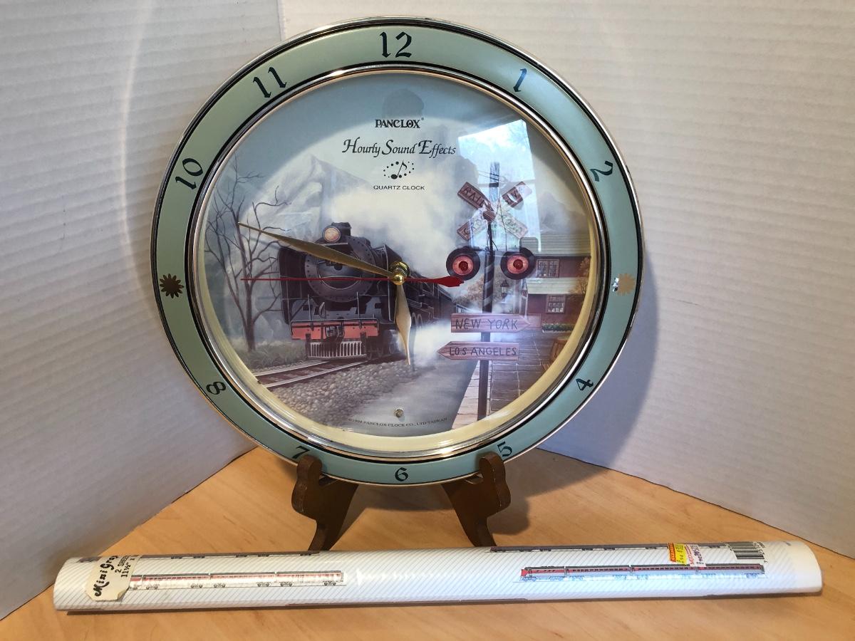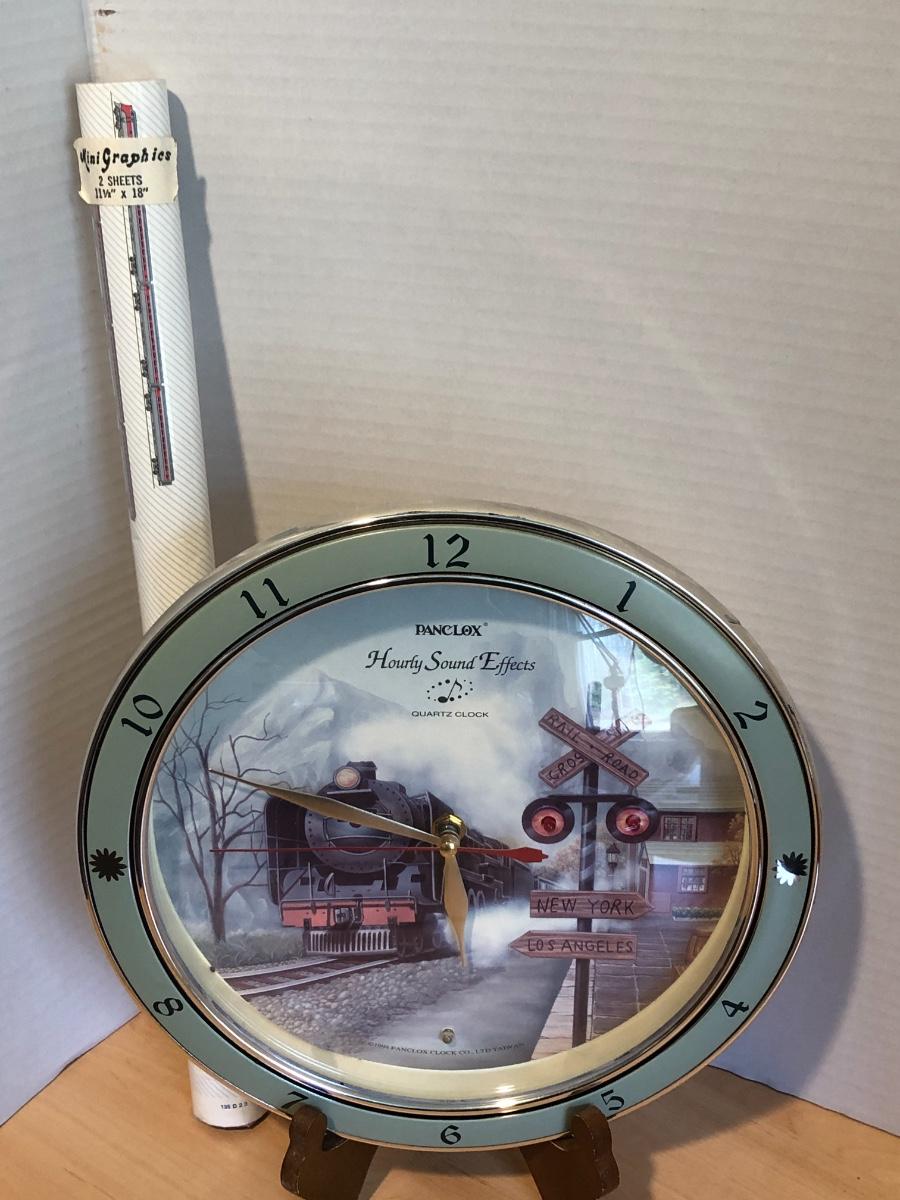 PANCLOX 1994 Hourly Sound Clock & 2 Sheets Train Graphics Paper