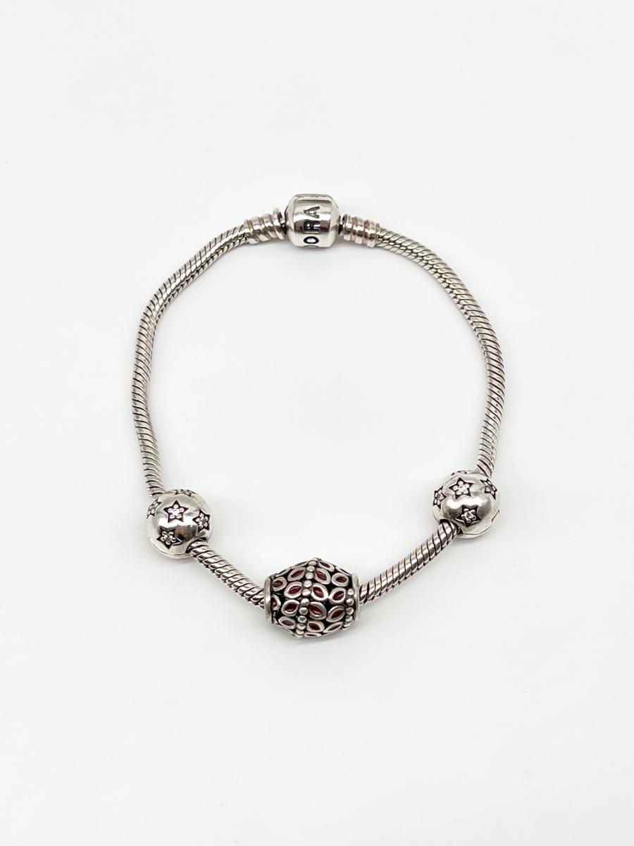 PANDORA ~ 925 ~ 7.5” Bracelet ~ Plus (2) Clips & (1) Bead