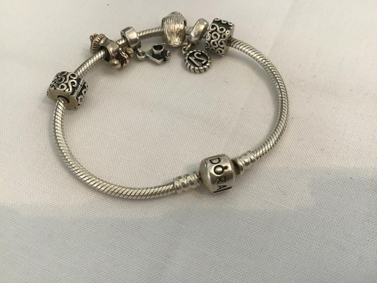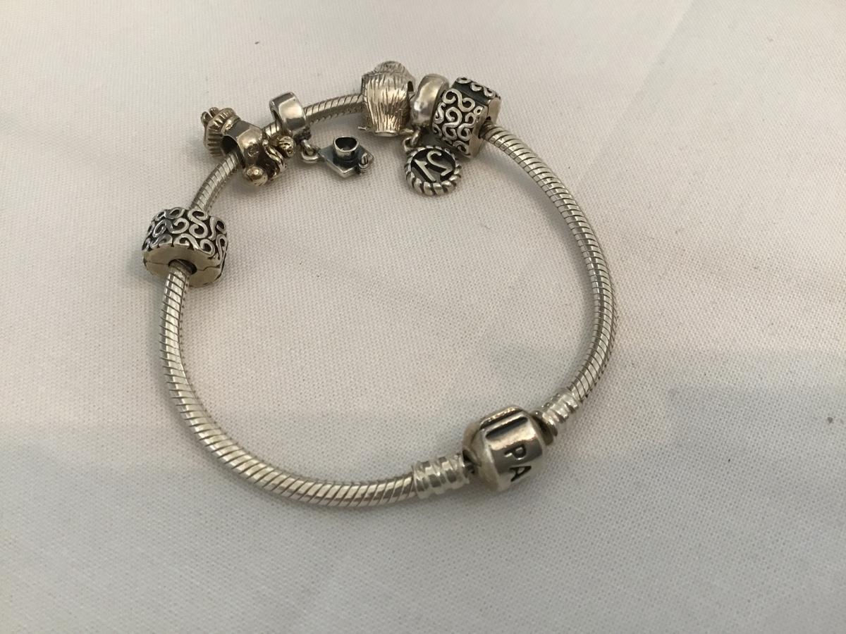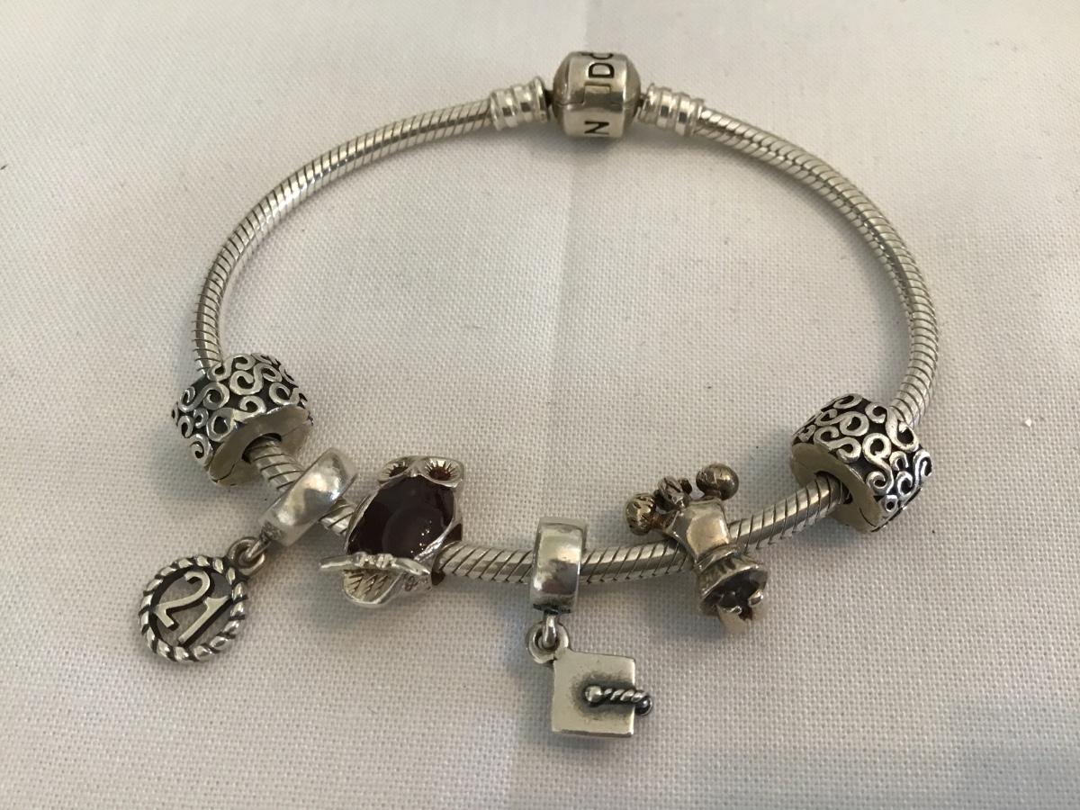 Pandora Moments Barrel Clasp Snake Chain Bracelet. With Multiple Charms