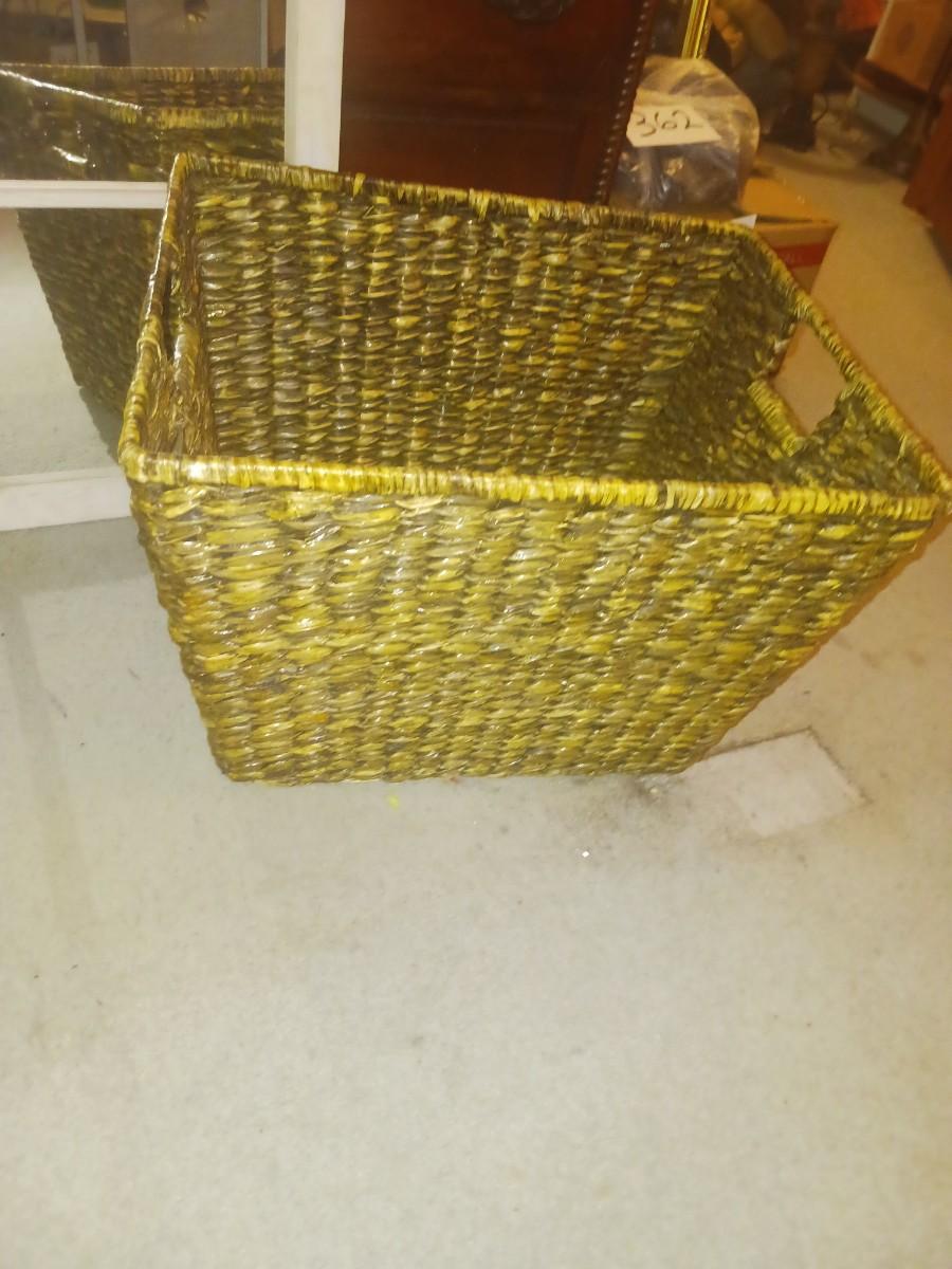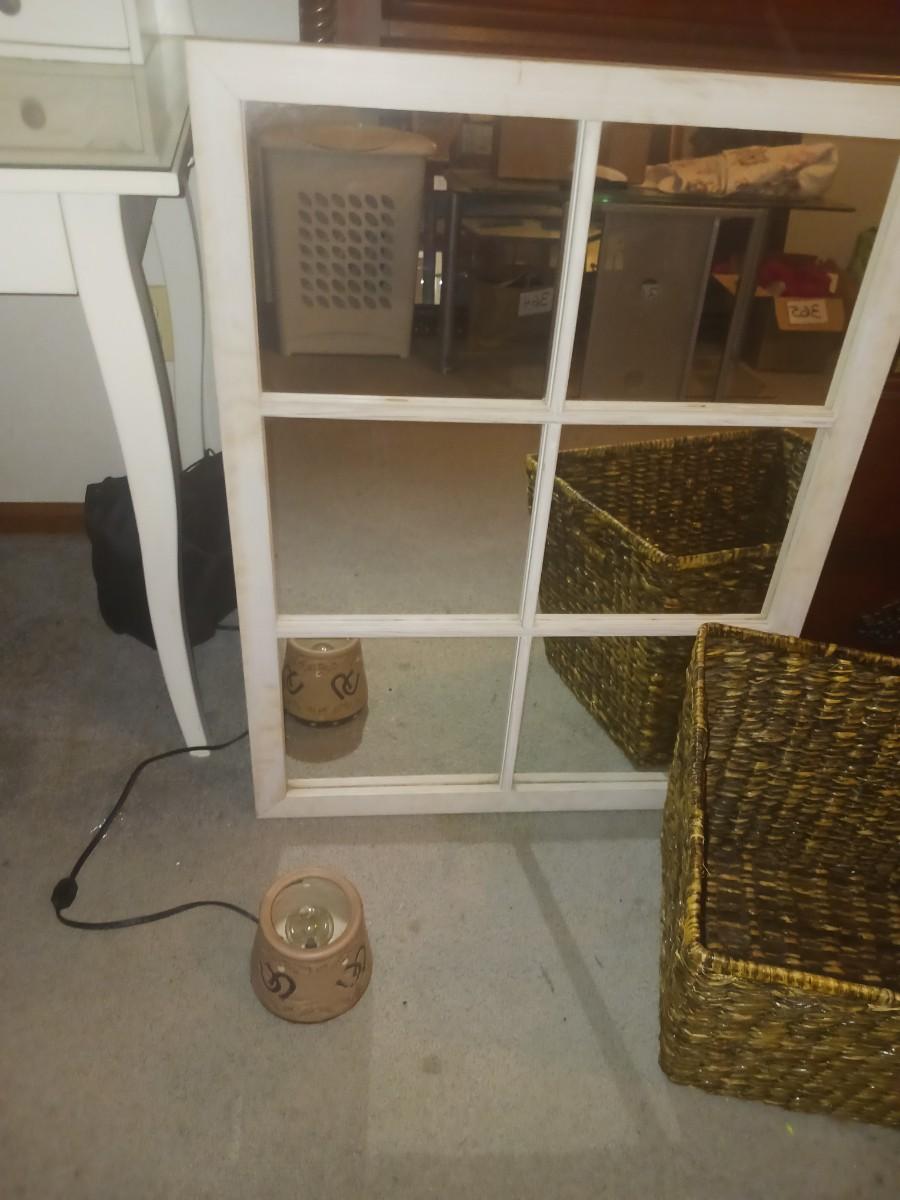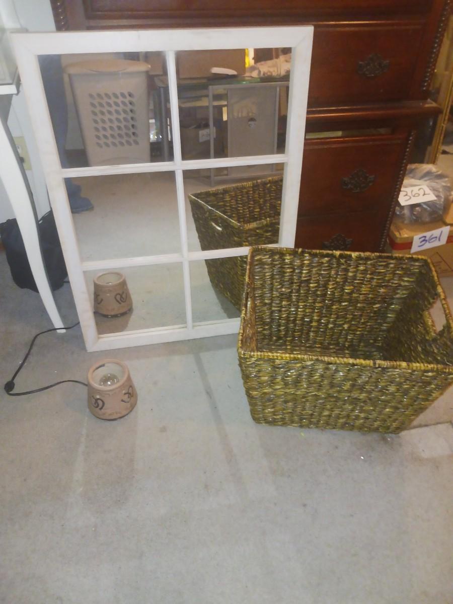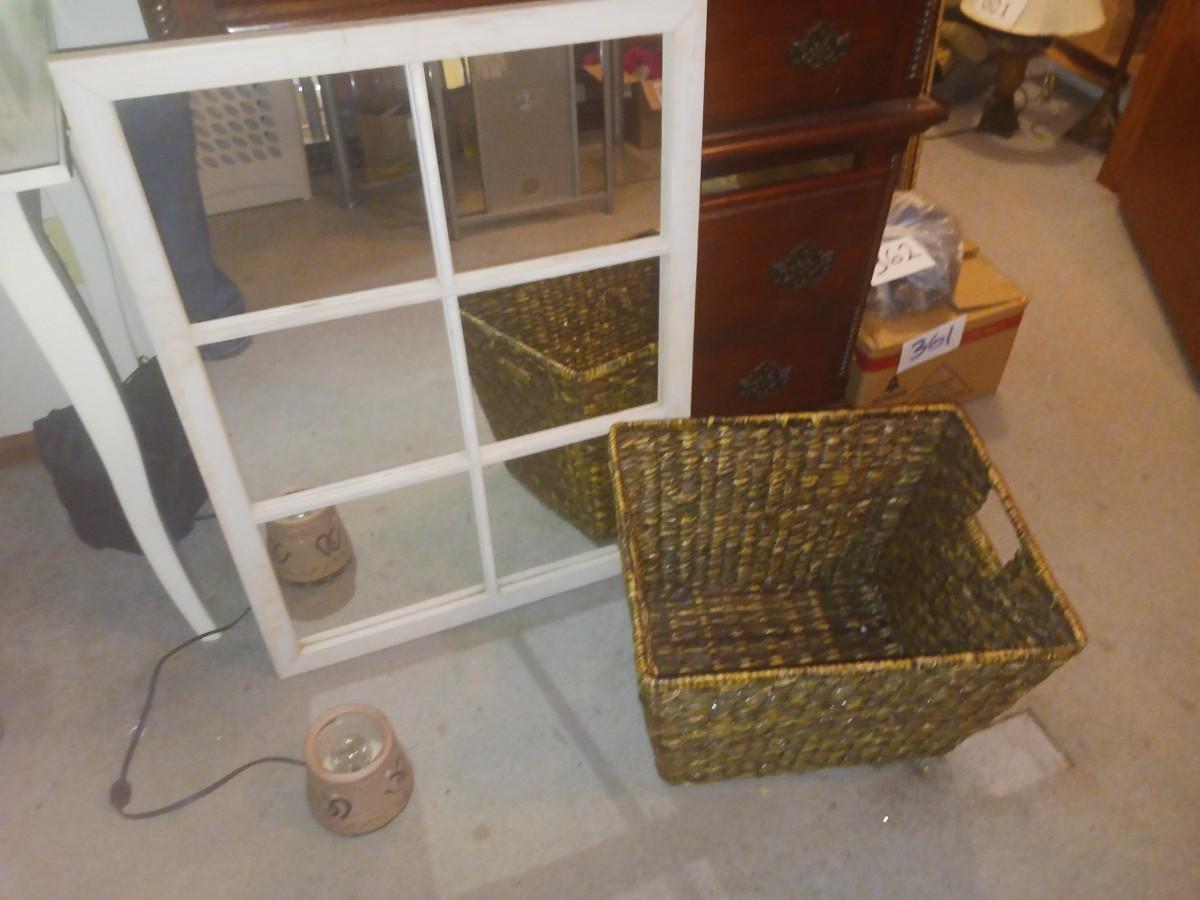 PANELED WALL MIRROR & LARGE WICKER BASKET