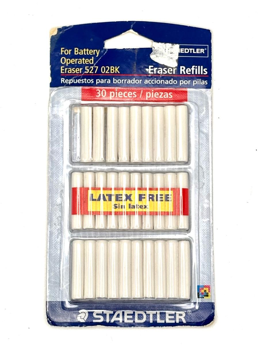 Some boxes of lead are open. Package of erasers is open and missing one eraser. Pencils have been used but are fully functional.