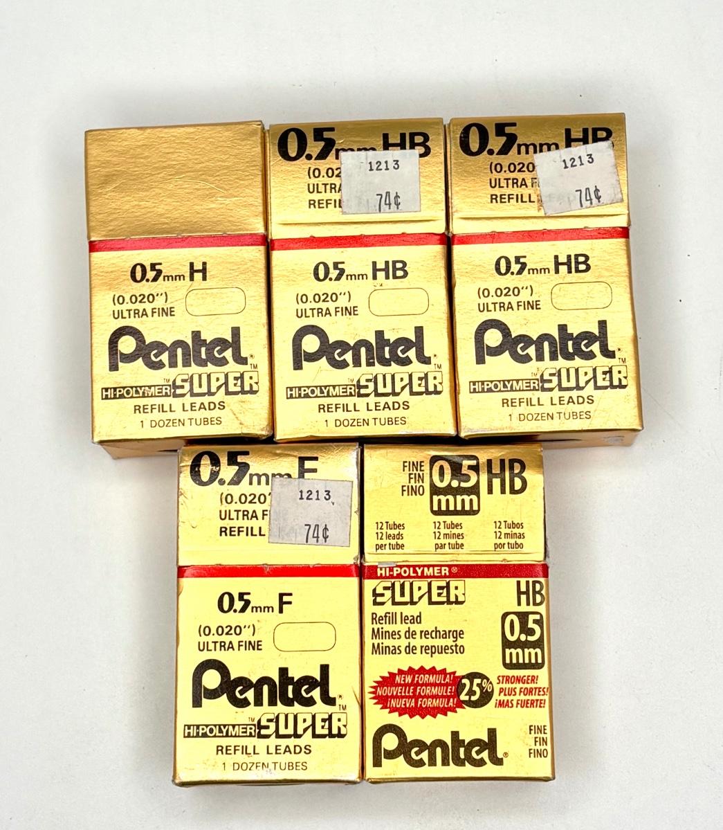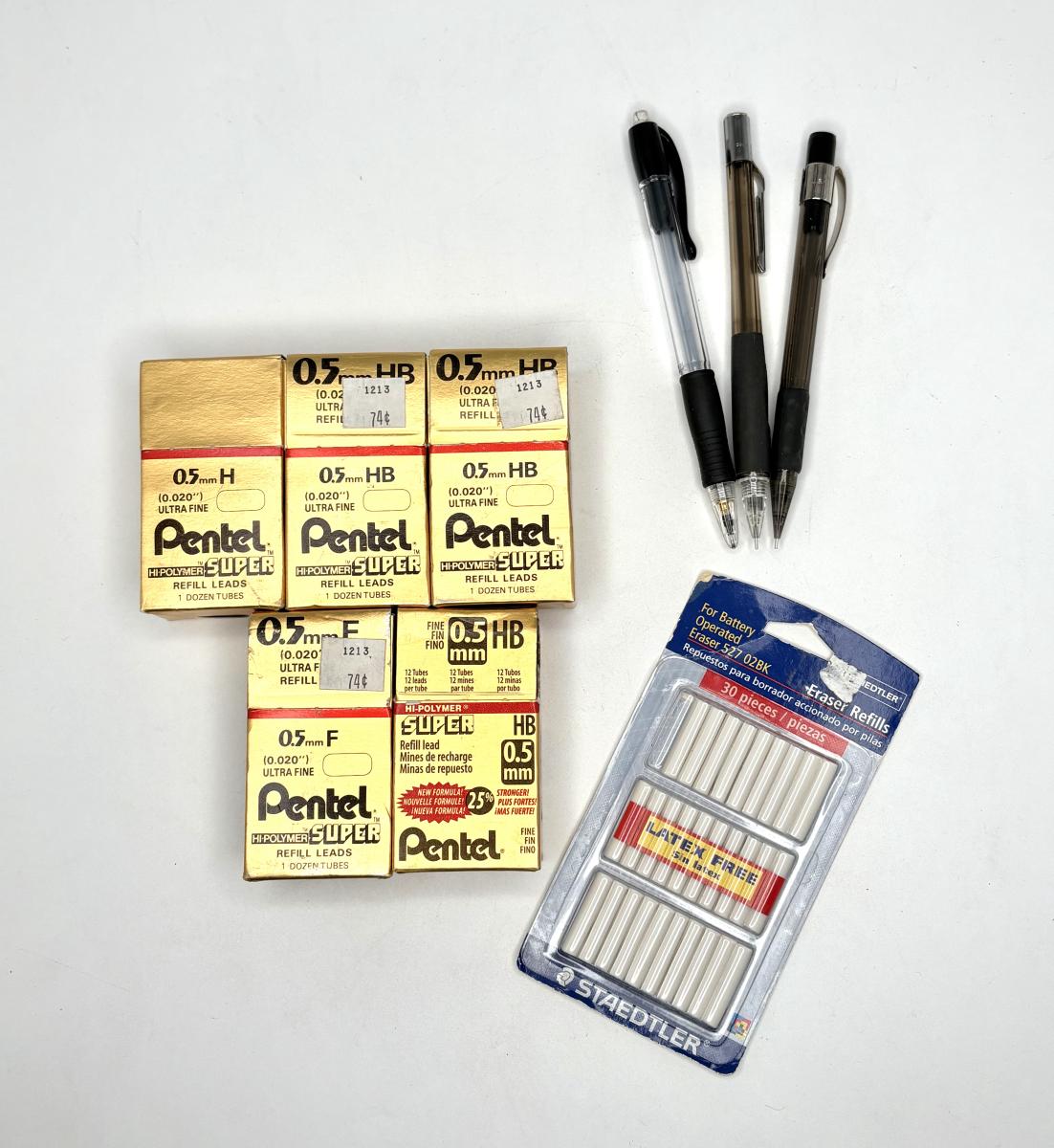 5 Packs of Vintage Pentel 0.5 Lead with 3 Mechanical Pencils and Pack of Erasers