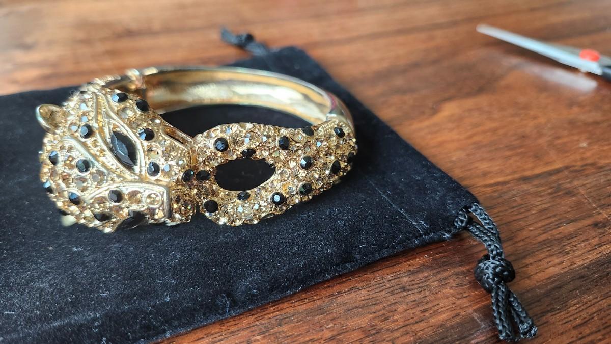 This clamper is a more normal bangle size, not oversized. A few stones are missing, and it shows signs of being well-loved, and worn often. It is still a lovely piece.