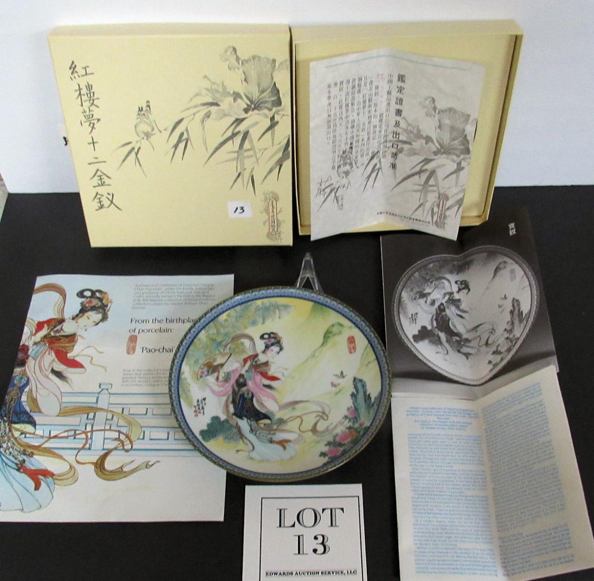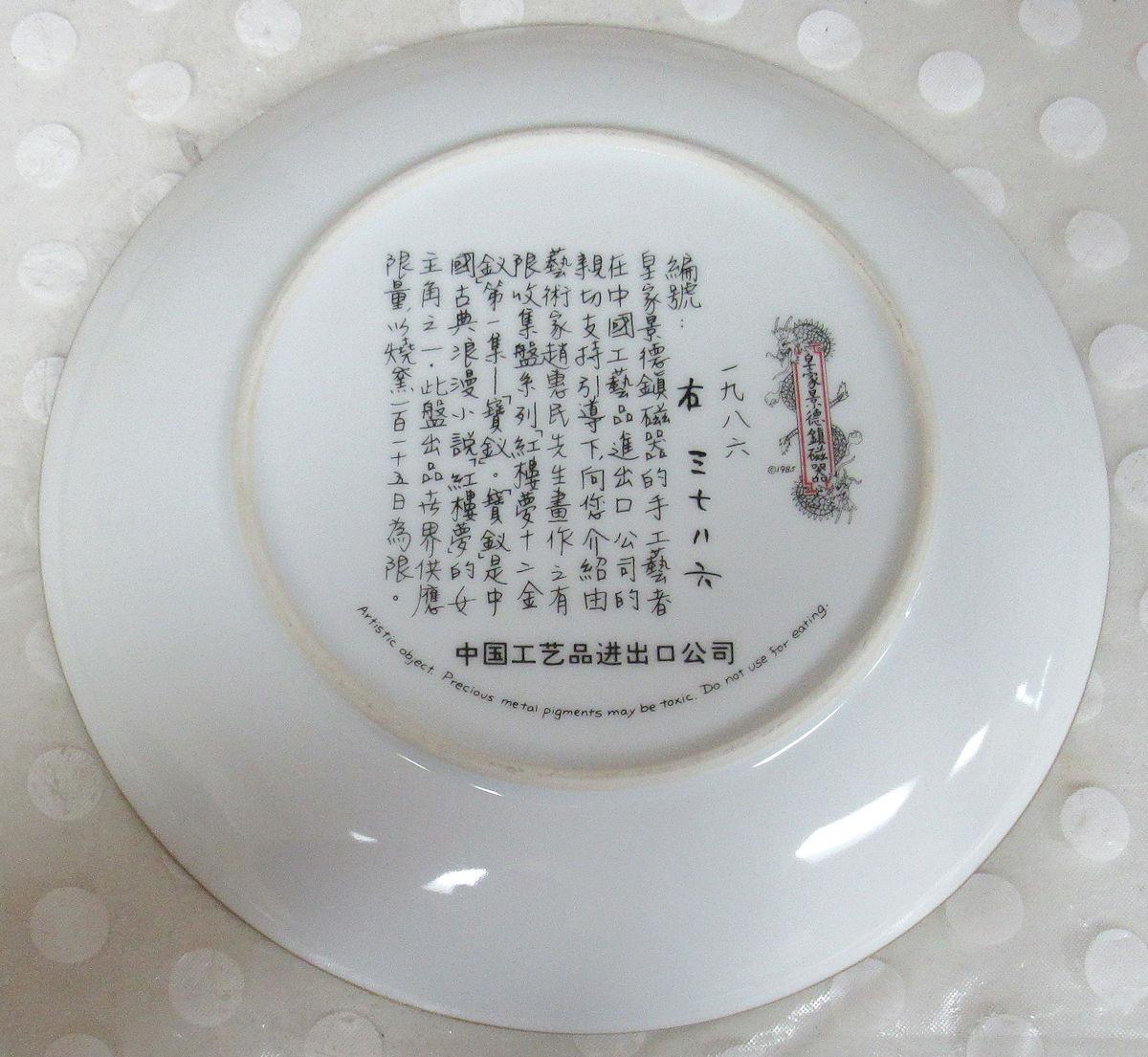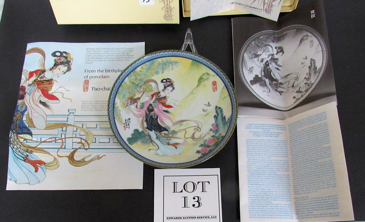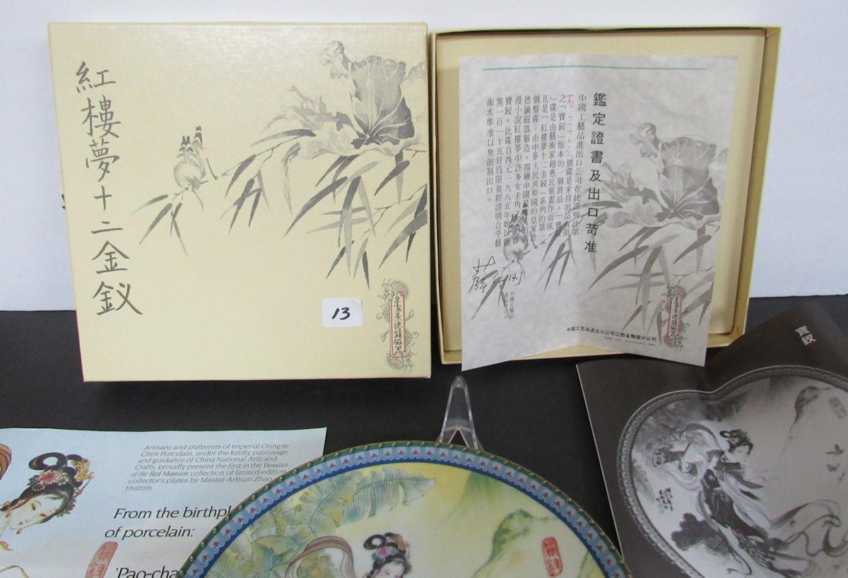 Beautiful Plate, beautiful condition. 1st in the Beauties of the Red Mansion Series, Imperial Ching-te Chen Porcelain Plates, by Master Artist Zhao Huimin. They were limited to 115 firing days only. Comes complete in box with package inserts. Shipping is available at shipping cost plus $5.00 handling fee on up to 8 items, $10.00 handling fee on 9 or more items.