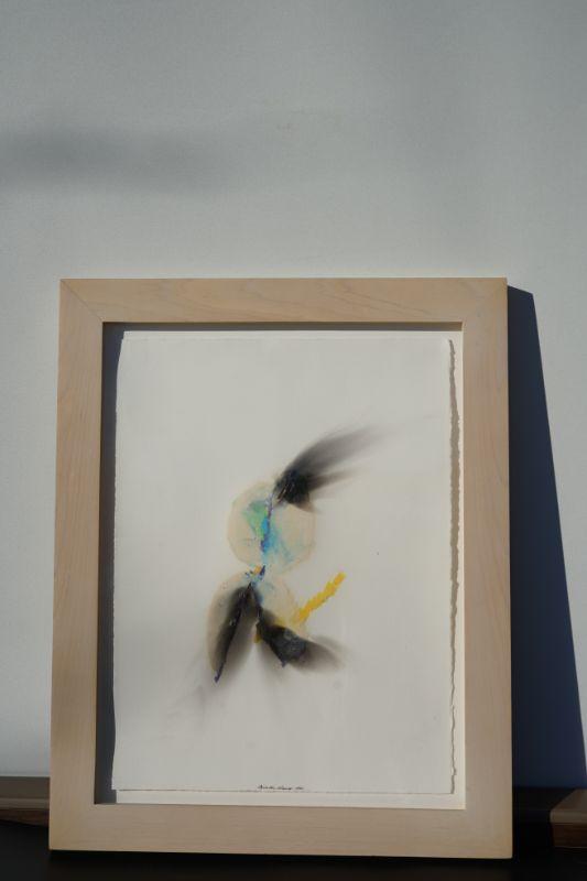 mixed media on paper, slight dimensional work. abstract. on hand made paper.