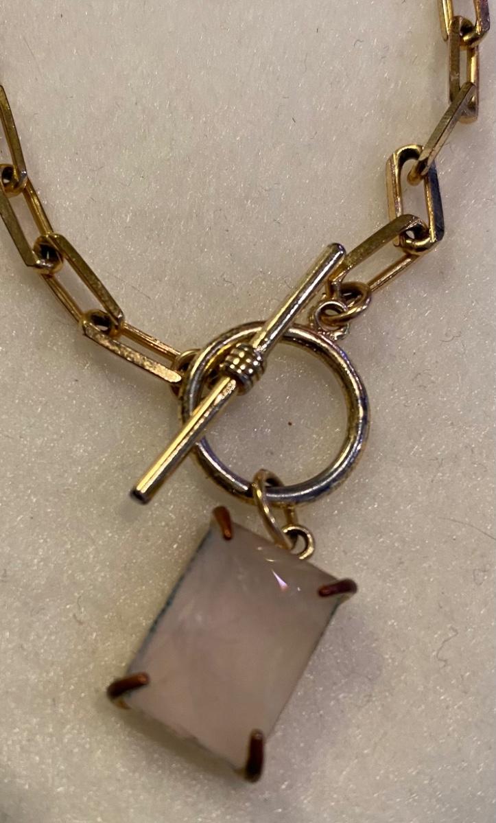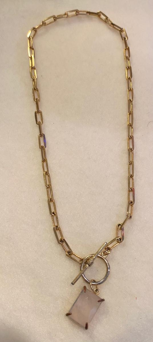 Paper clip goldtone chain with rose quartz - choker 14”
