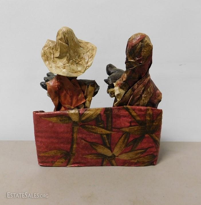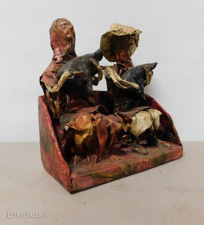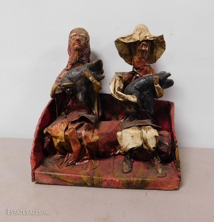 Paper Machete Rustic Couple Holding Hogs. In good condition. Interesting piece.