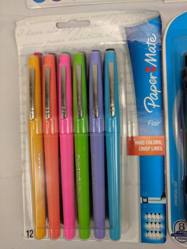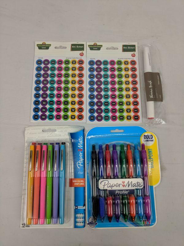 Paper Mate Flair Pens & Paper Mate Profile Pens & 2 Sets of Mini Stickers & Shimmer Brush - New