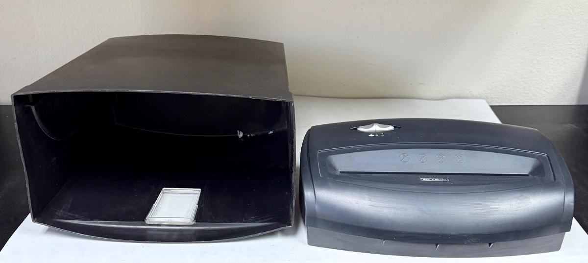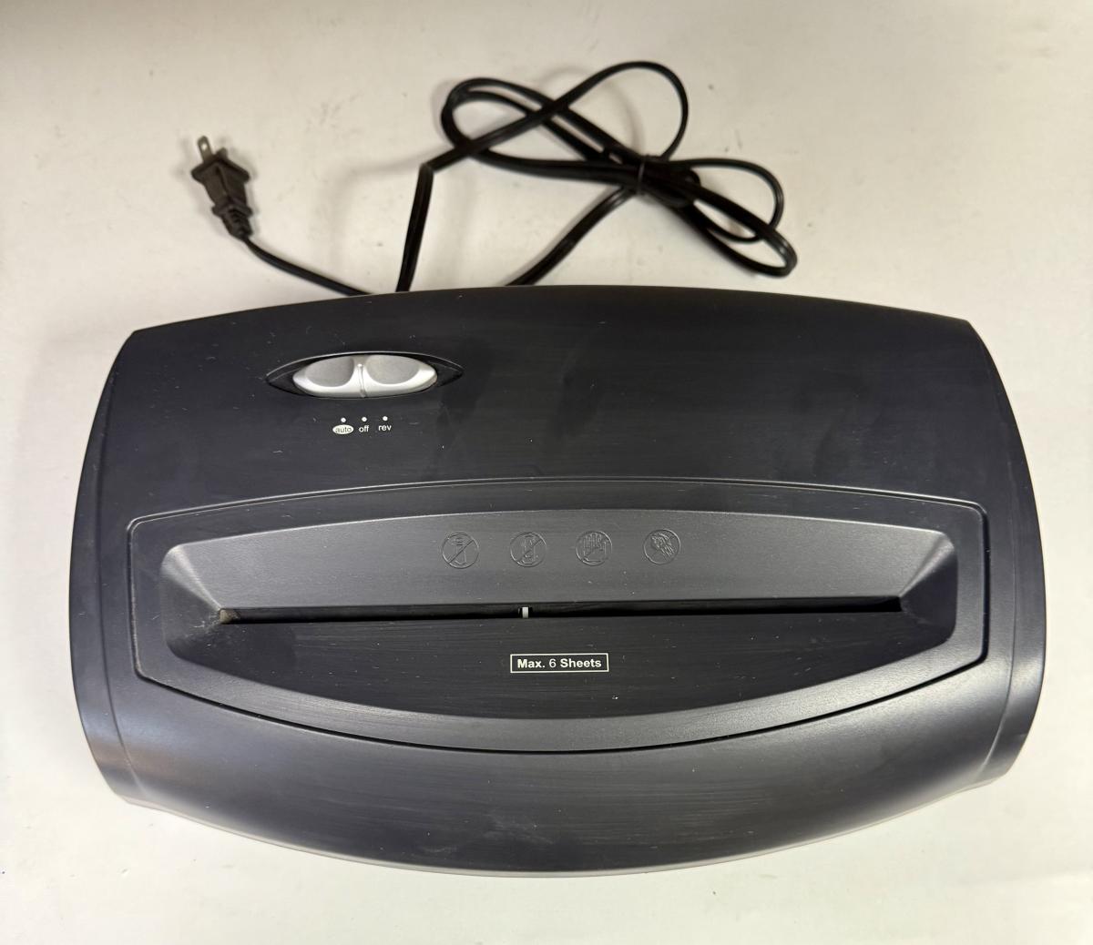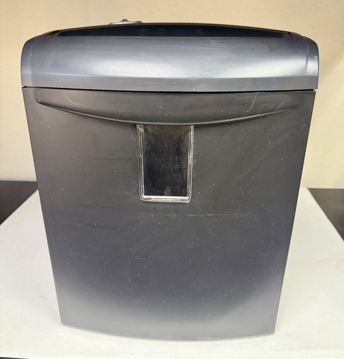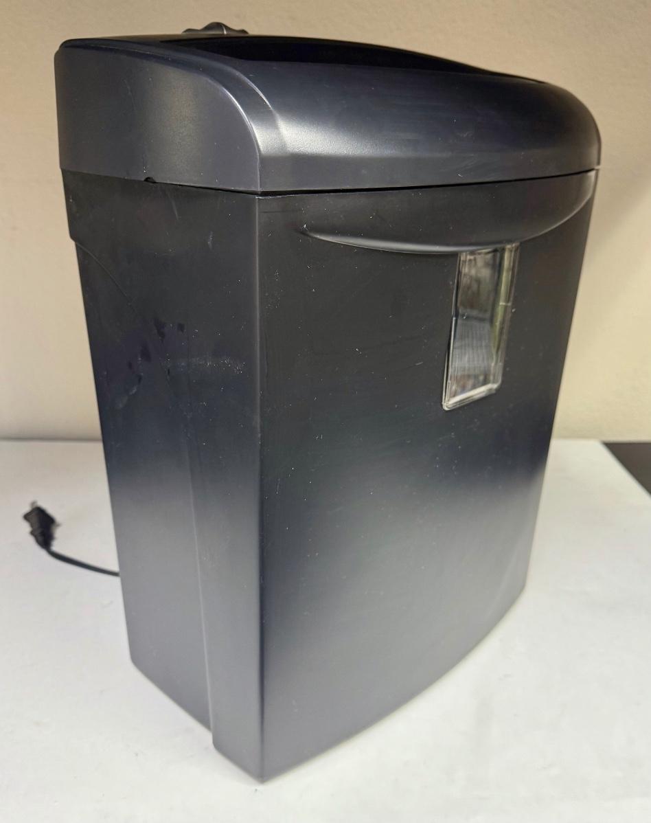Electric paper shredder. Tested, runs quiet and strong, shreds nicely.