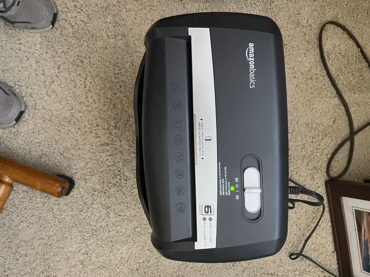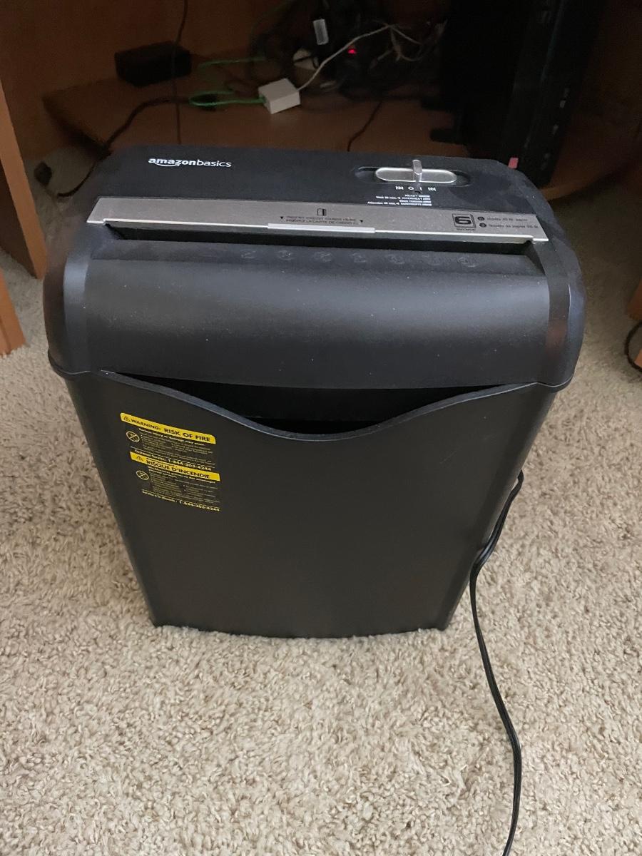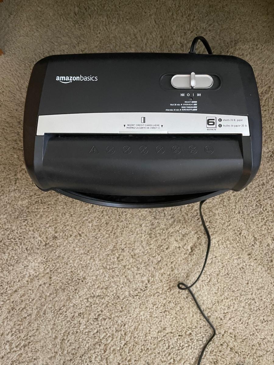Paper shredder can do 6 sheets at a time, also credit cards. Tested.