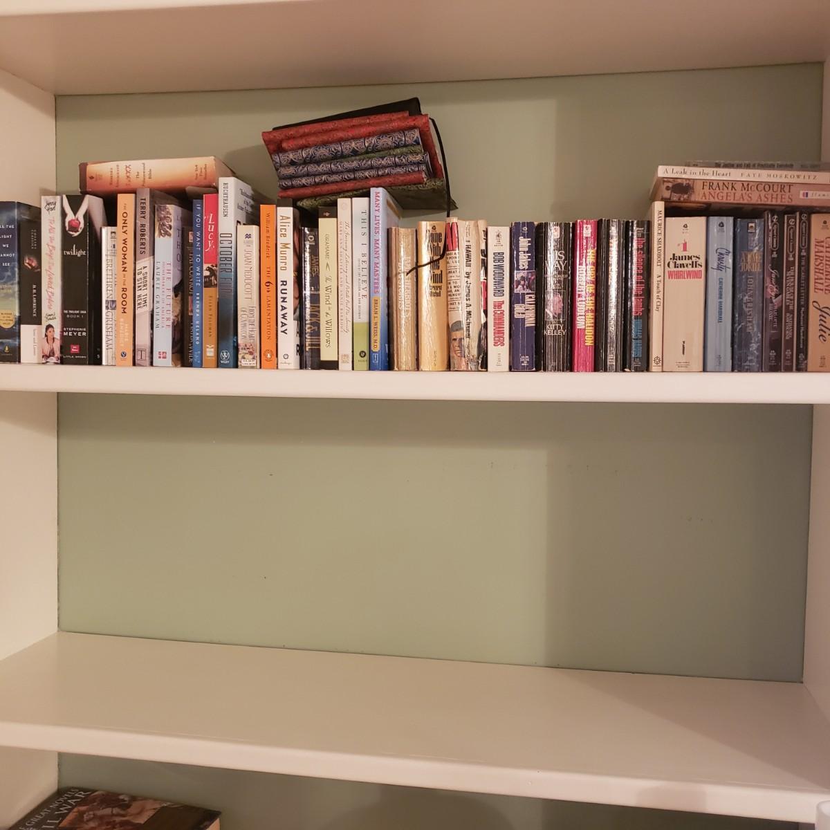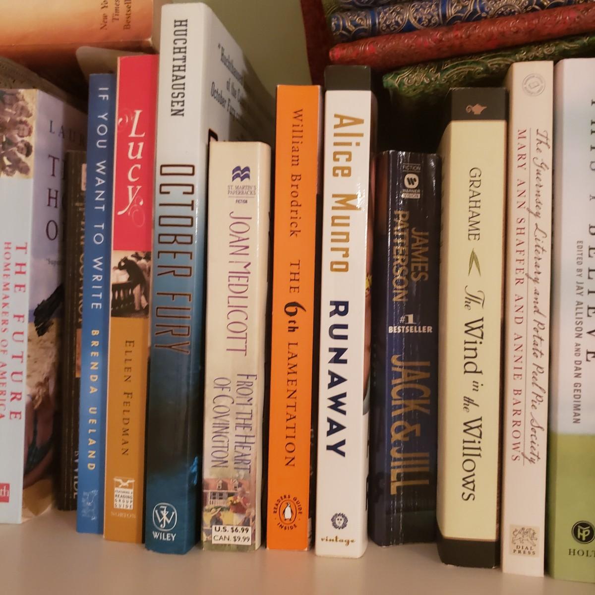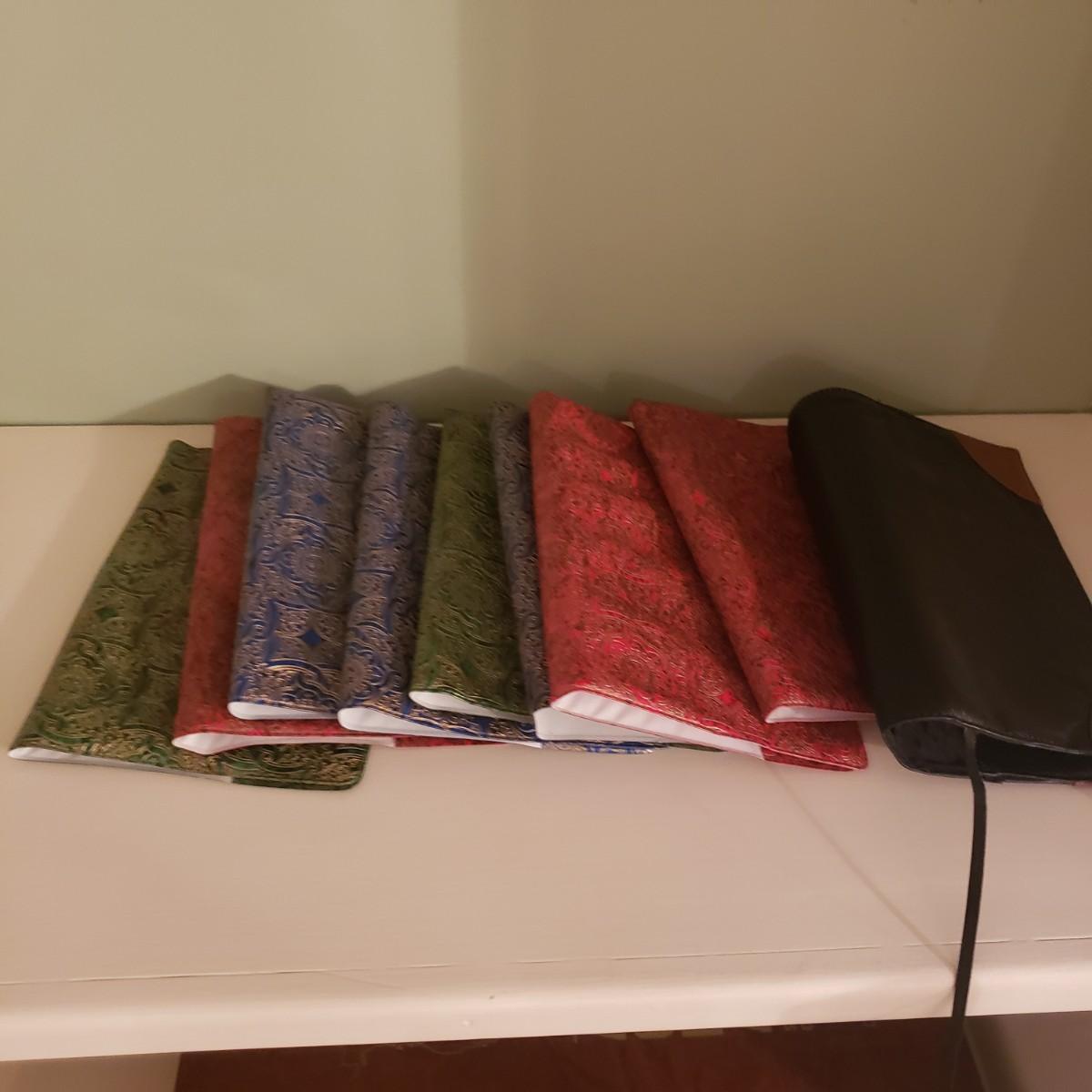 This paperback book lot has a wide variety! See pictures for titles and authors. Also included are plastic book covers, see picture. There is one book cover that is leather and has a book mark string as a bonus!