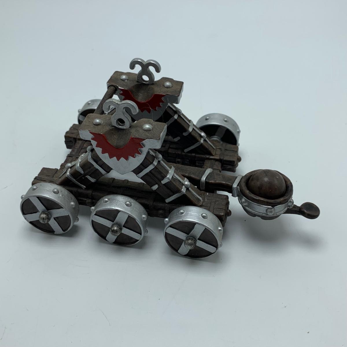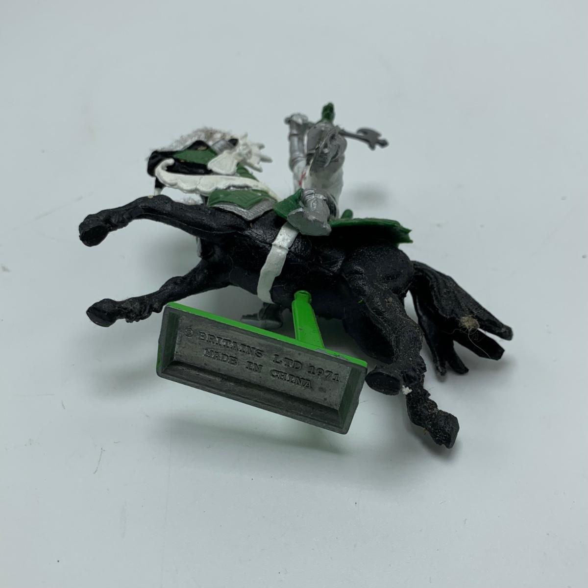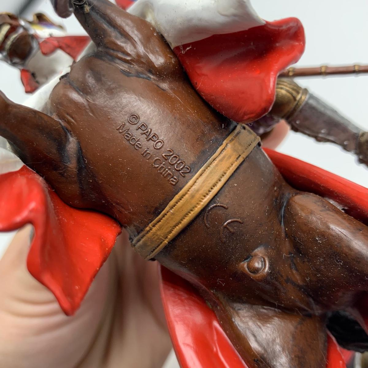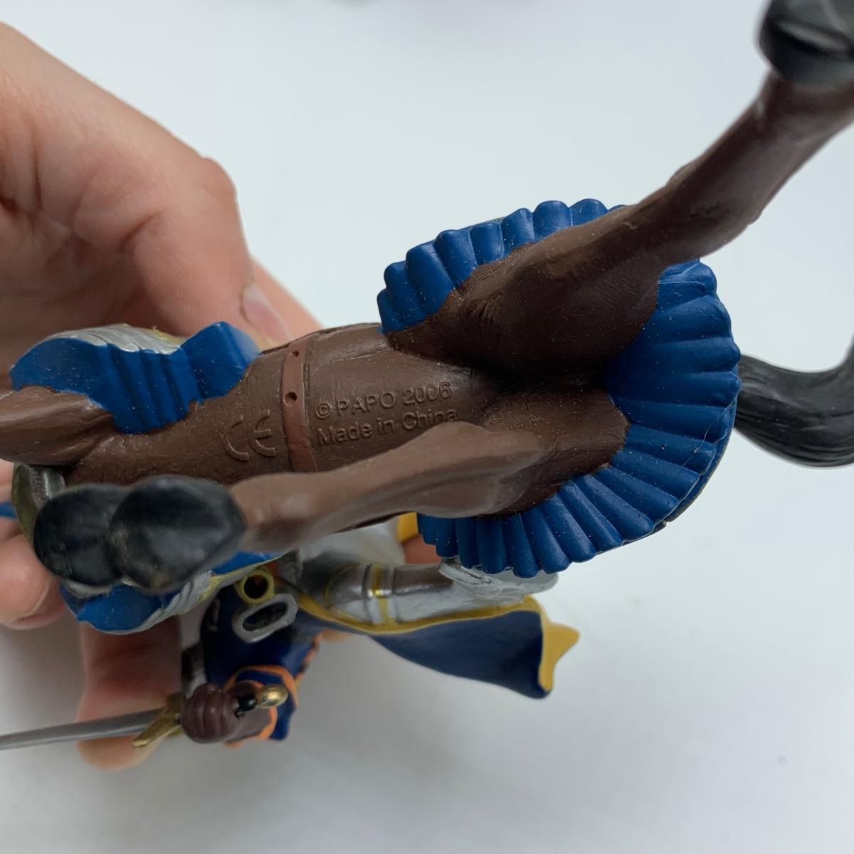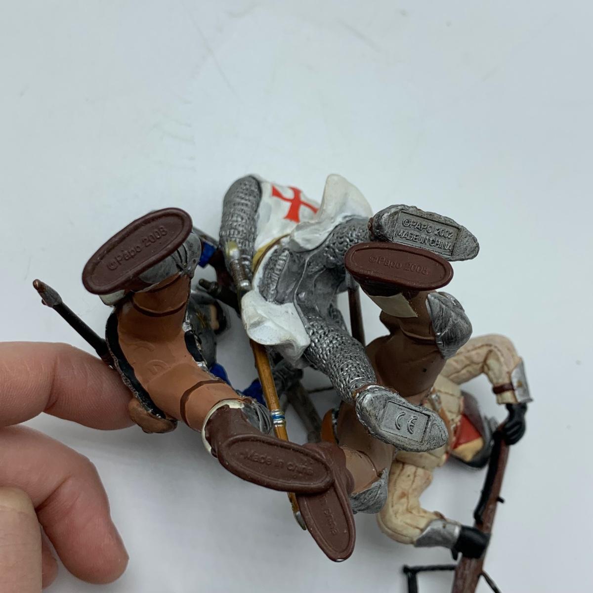 A large collection of mostly Papo brand action figures including 19 knights on horses and five standing knight figurines, as well as one catapult. The knights without the horses are approximately 4” tall.