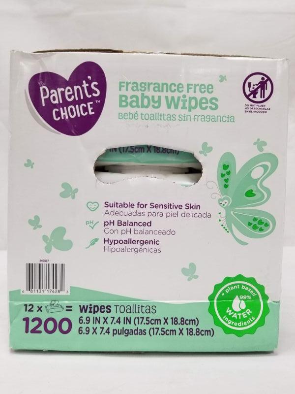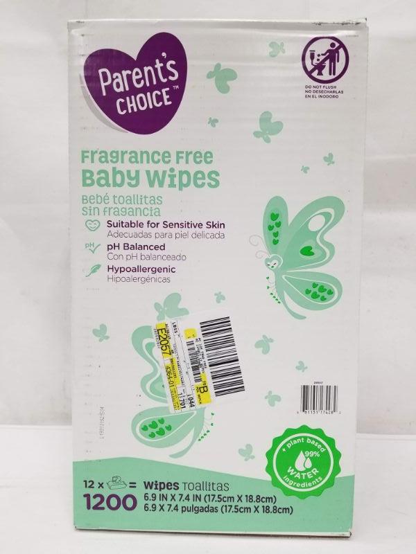 Parent's Choice Fragrance Free Baby Wipes - 1200 (12pks of 100) - New