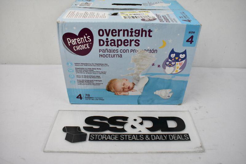 Parent's Choice Overnight Diapers, Size 4, 78 Diapers - New