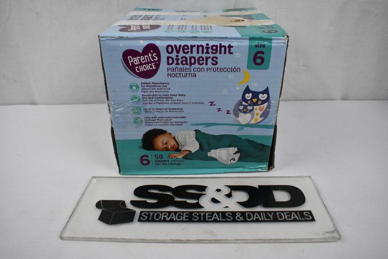 Parent's Choice Overnight Diapers, Size 6, 58 Diapers. Damaged Box - New