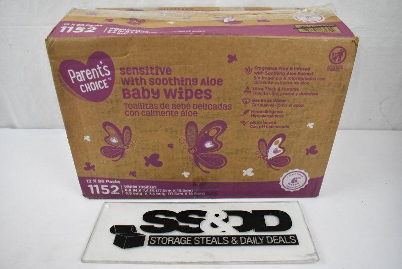 Parent's Choice Sensitive with Soothing Aloe Baby Wipes, 12 packs of 96 (1152 count) Open Box - New