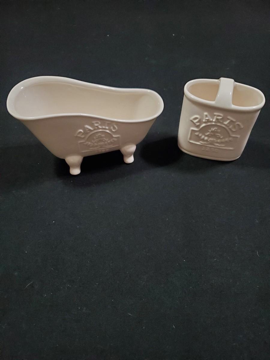 Paris Bathroom Décor Bathtub & Toothbrush Holder Set