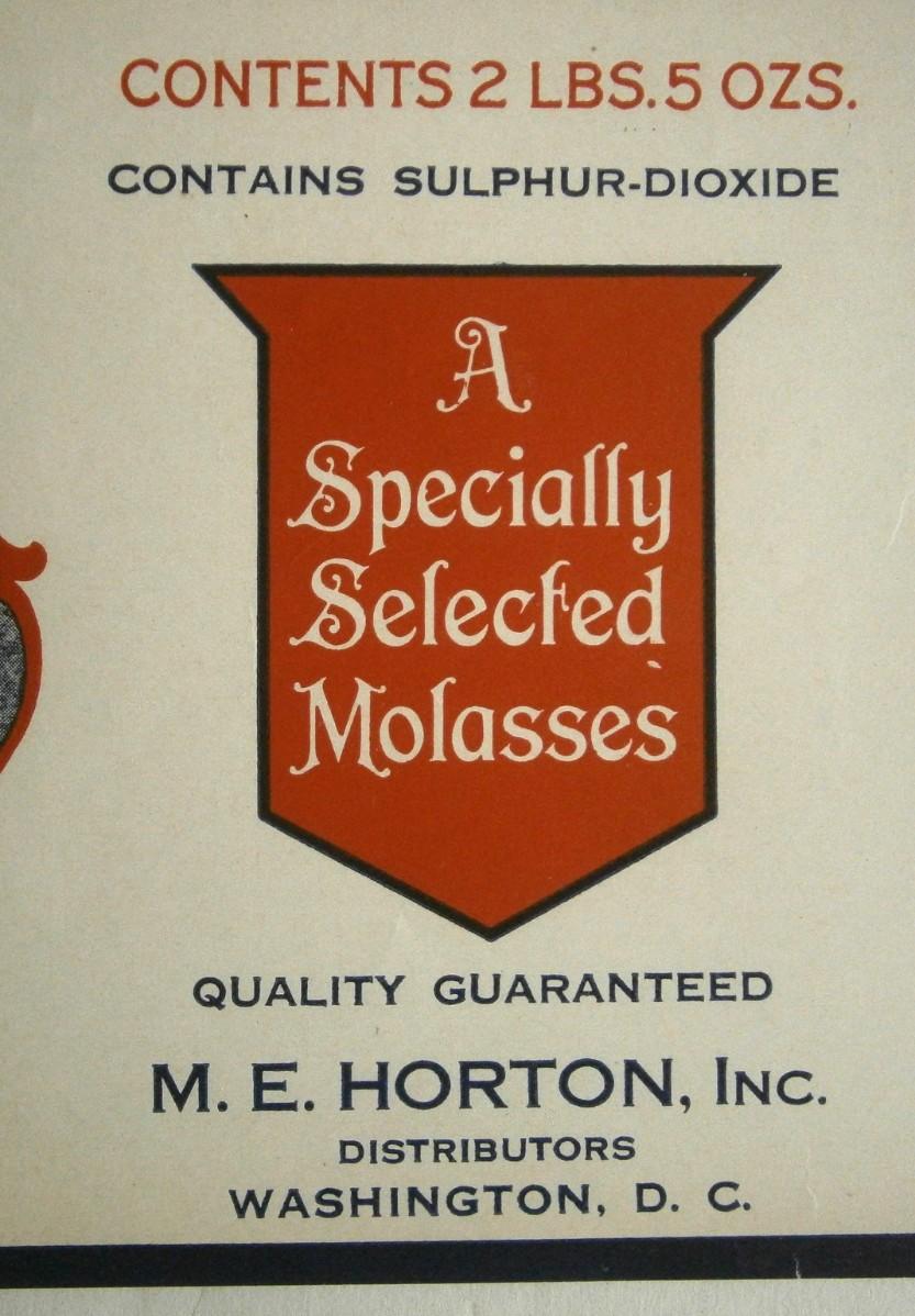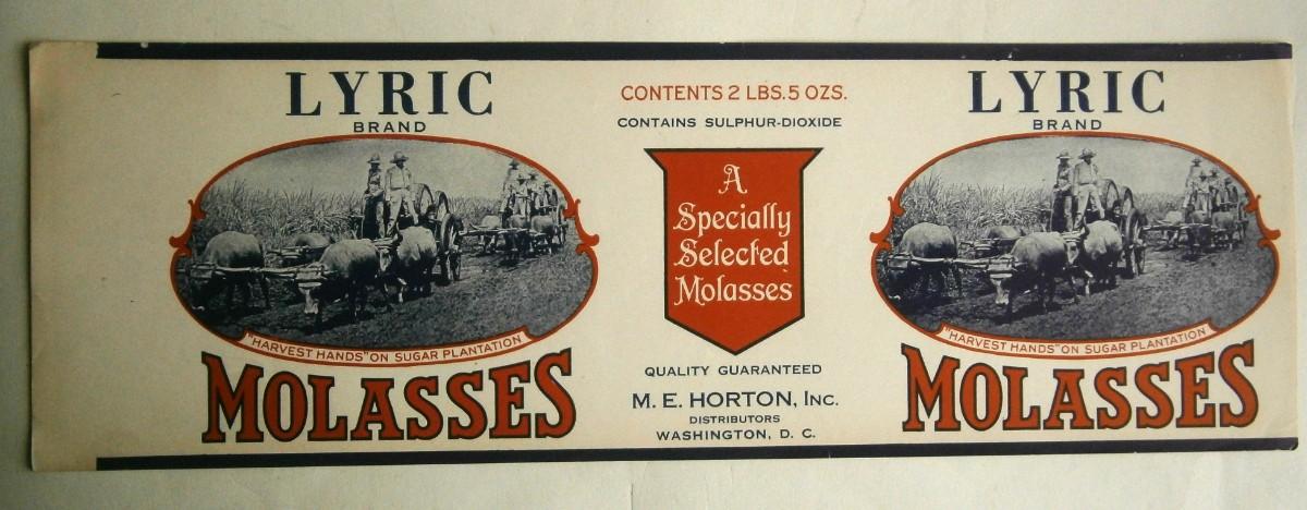 Vintage LYRIC Molasses Can Label distributed by M.E. HORTON, INC., Washington, D.C., 13 1/4 x 4 3/8 in., lithographed paper.