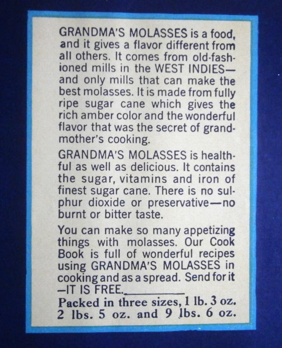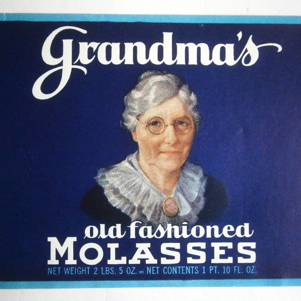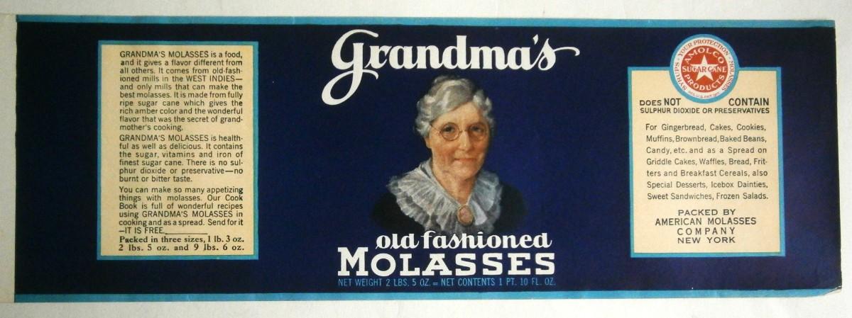 Vintage Grandma's Molasses Can Label, distributed by American Molasses Co., NY., 13 1/4 x 4 3/8 in., lithographed paper.