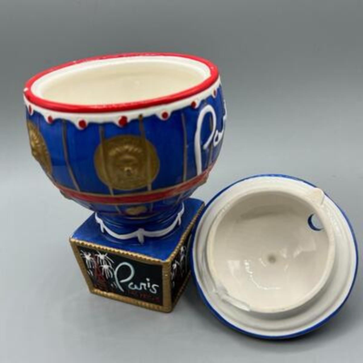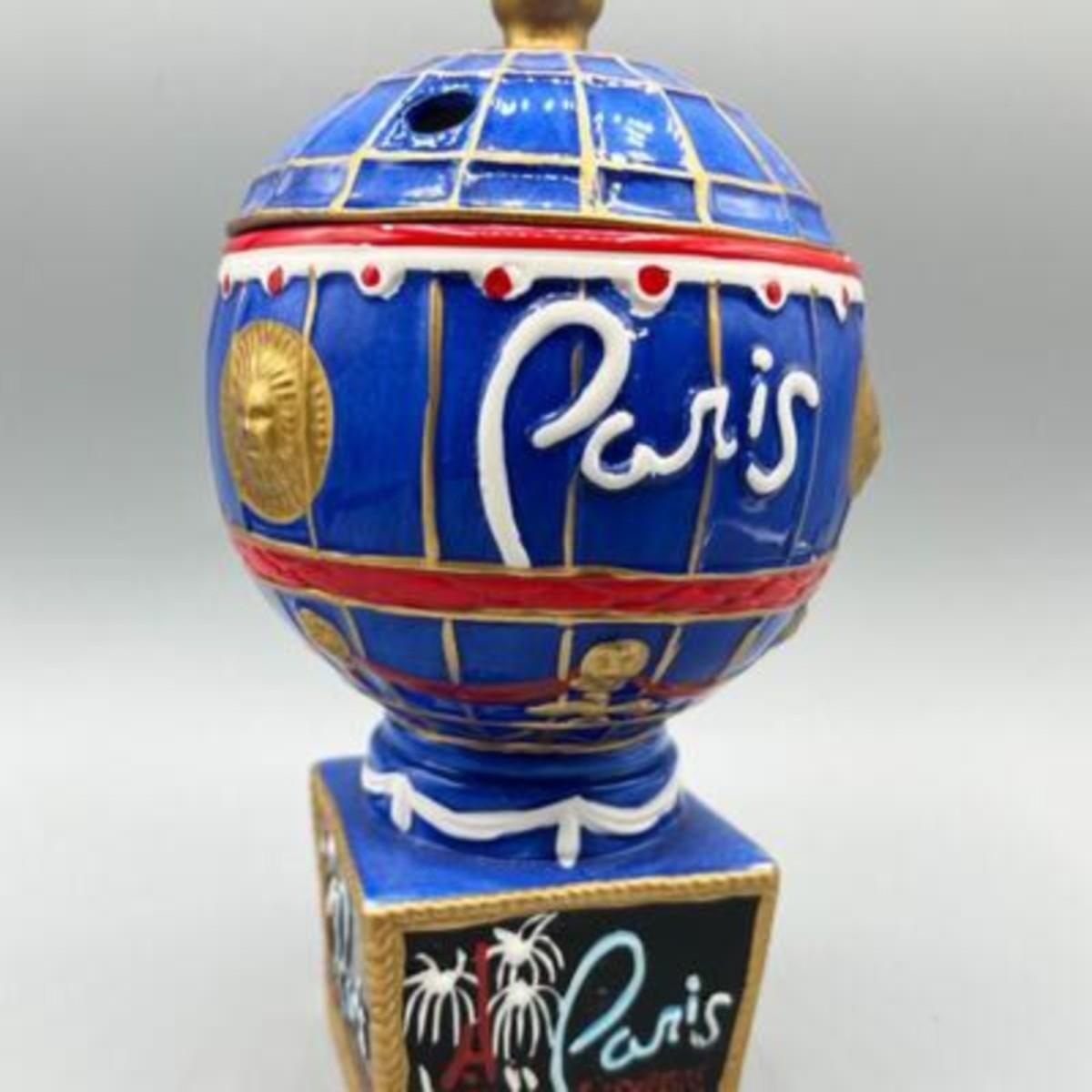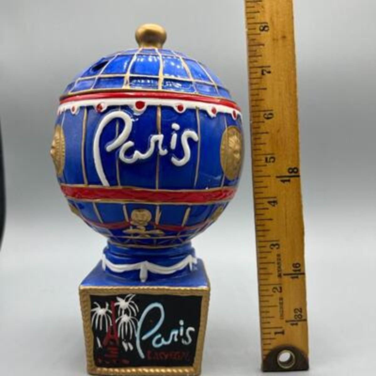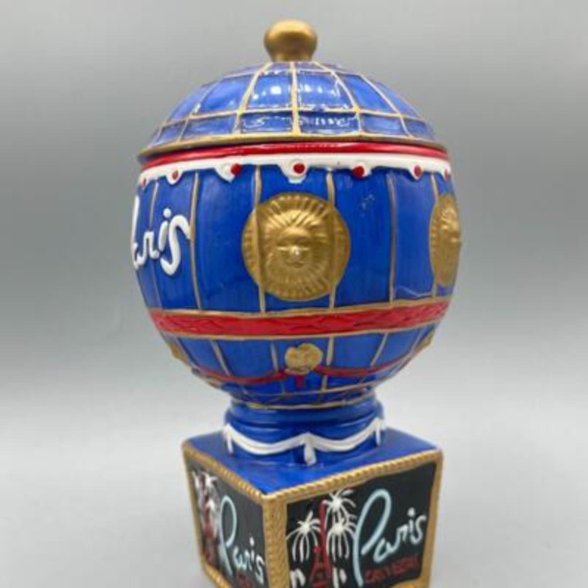 Paris Hotel & Casino Las Vegas souvenir hot air balloon lidded drink cup. Ceramic souvenir, does have a chipped piece inside on the lid, not noticed when closed. About 8" size.