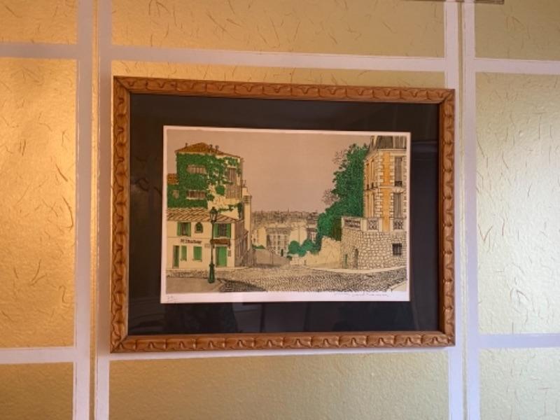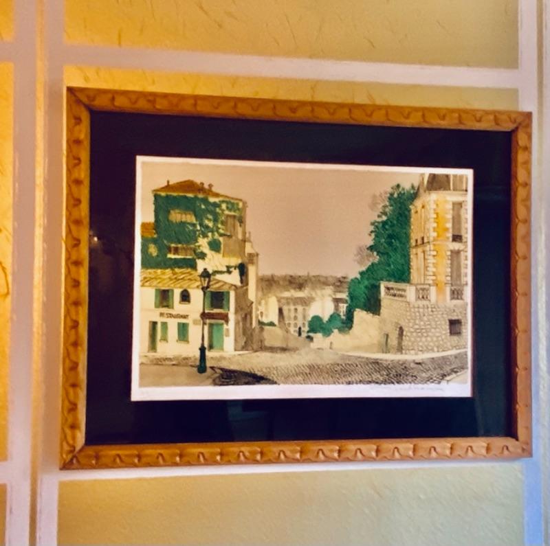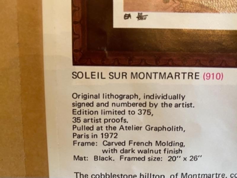 PARIS Lithograph Denis Paul Noyer SOLEIL SUR MONTMARTRE with French Carved Frame