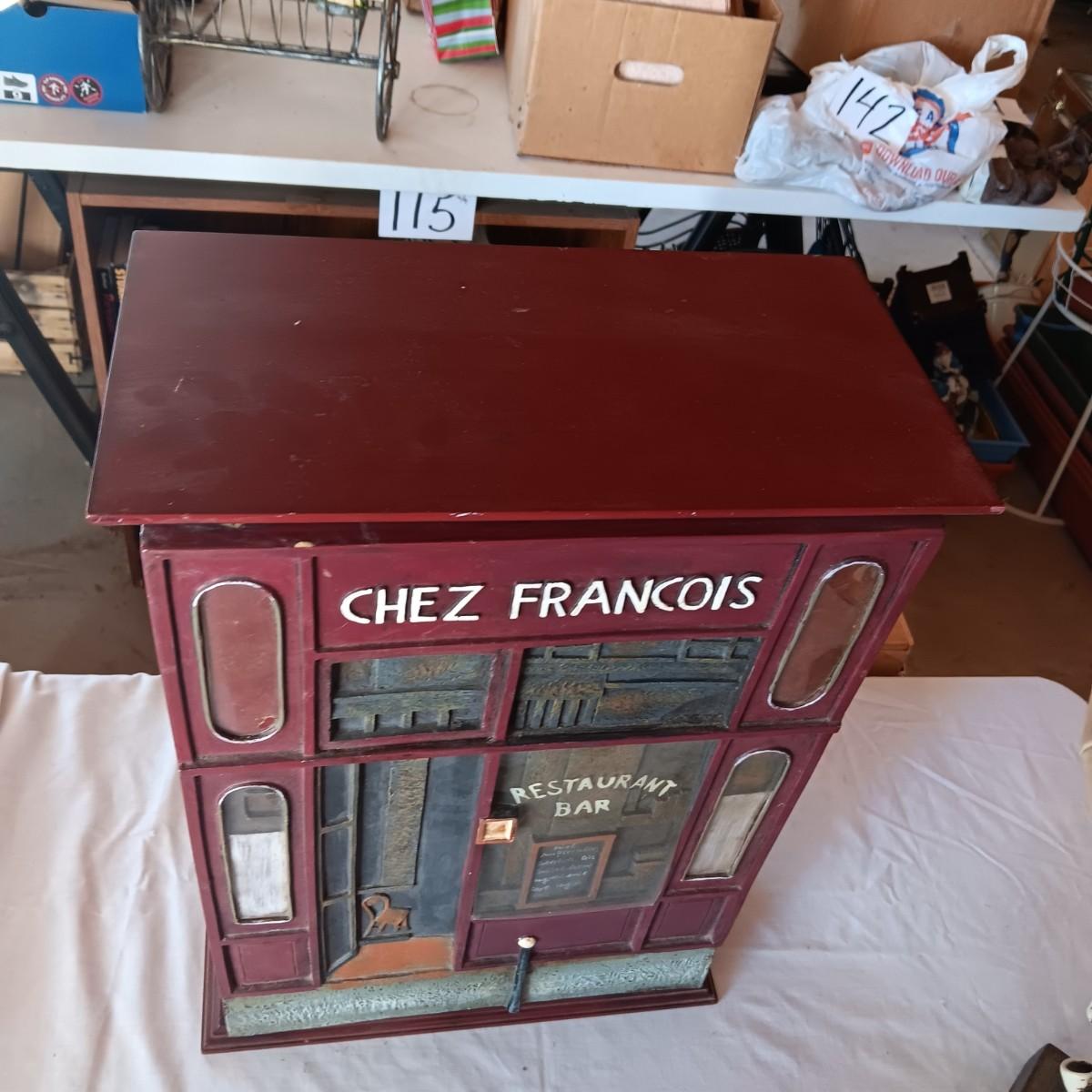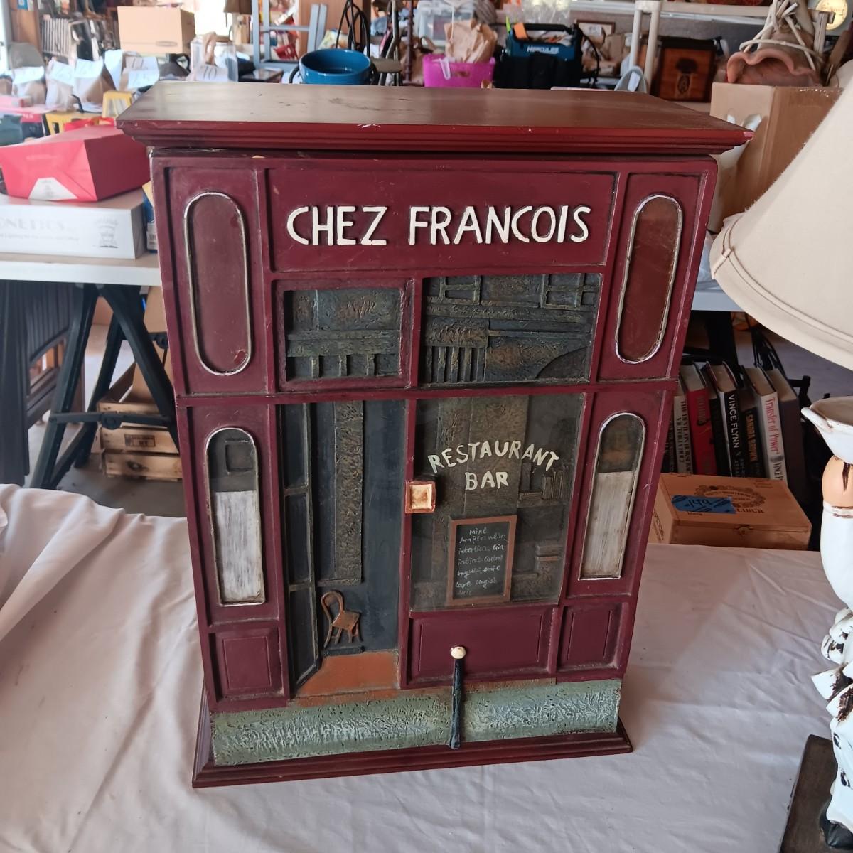 PARISIAN SPICE? CABINET W/SHELVES AND CHEF PIG LAMP PLUS 2 TILES