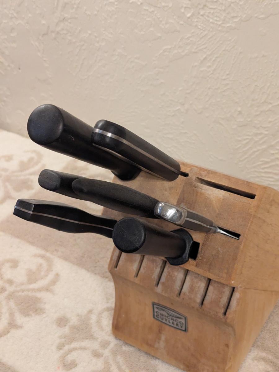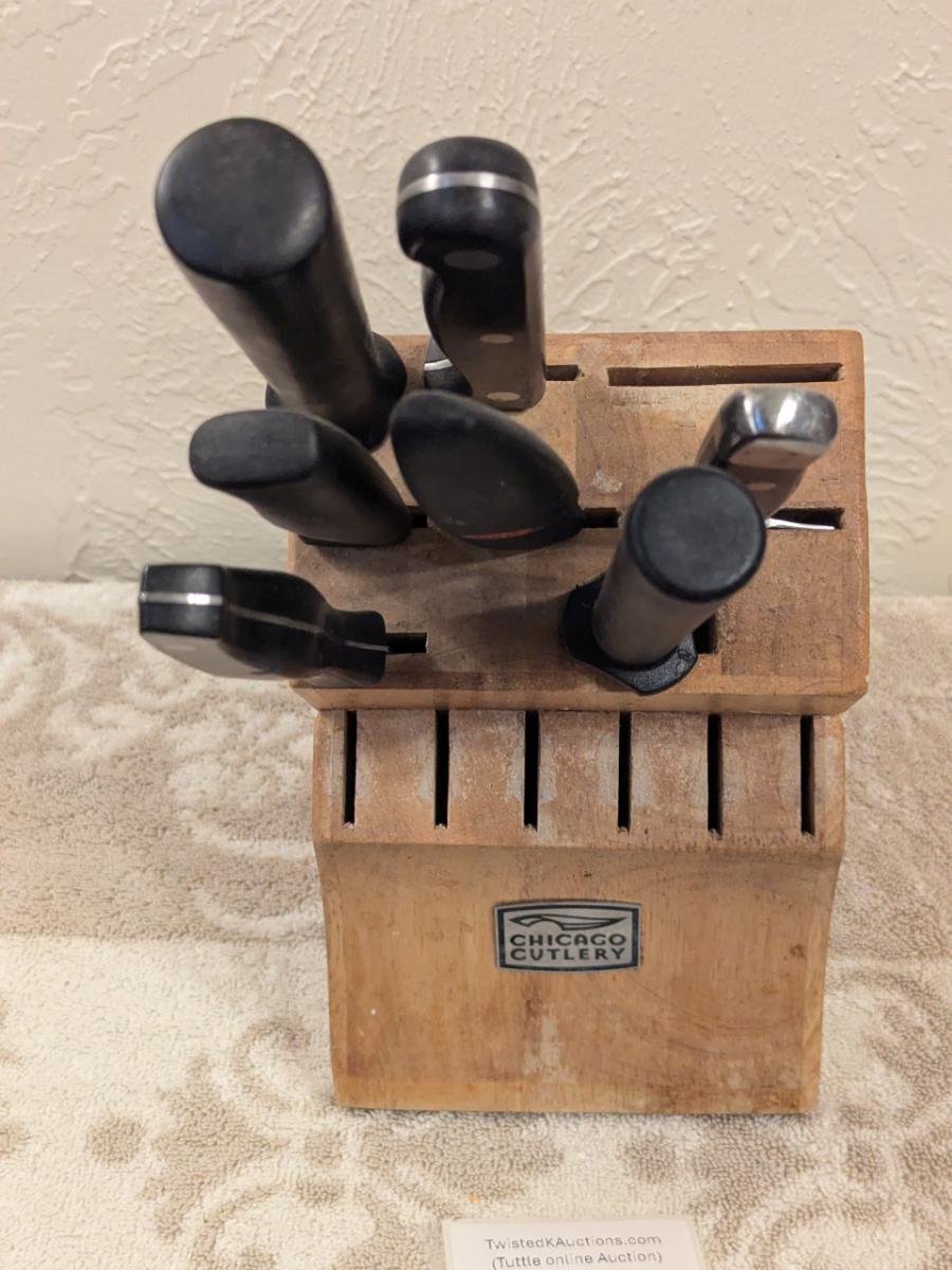parital set of chicago cutlery knives and wooden block see all photos.