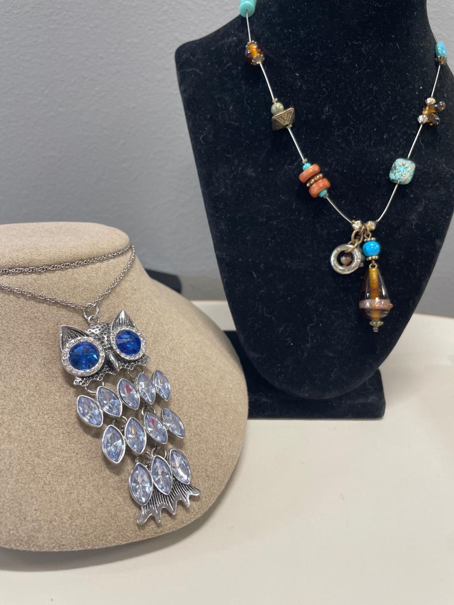 Park Lane owl necklace and Treska stone necklace