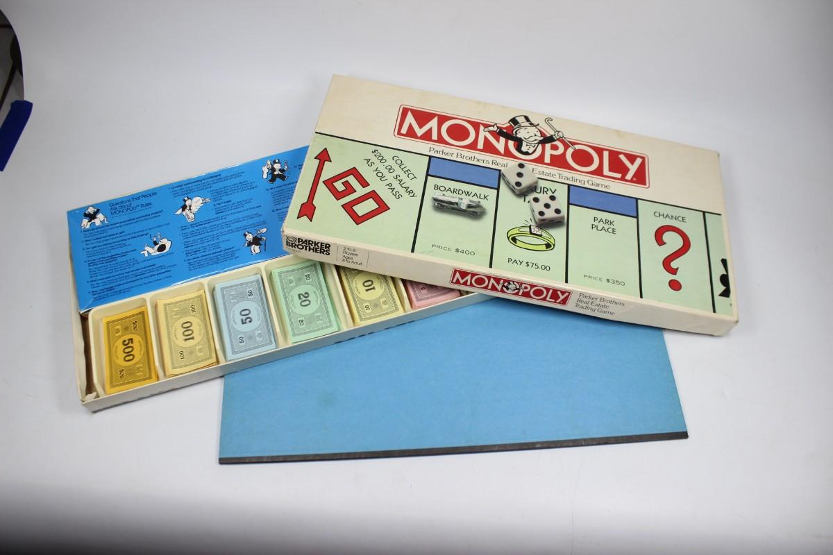 Parker Bros MONOPOLY Real Estate Trading Board Game. Did not check all the pieces but looks fairly complete. Light wear from use.