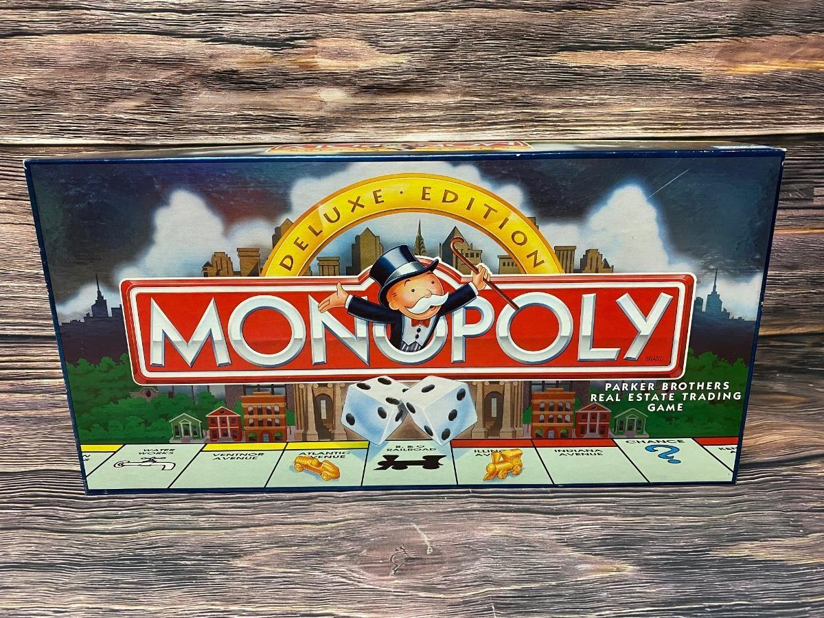 Parker Brothers Deluxe Edition Monopoly, there is no significant damage to the game board or pieces and is in good playable condition. Everything seems to be complete, check pictures for more detaisl and for sizing.