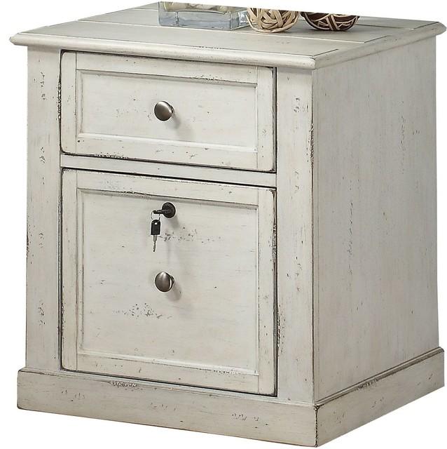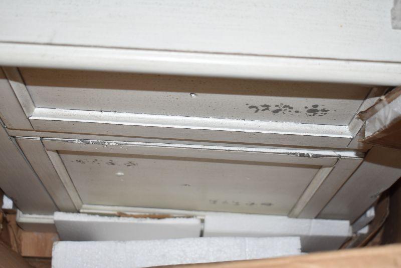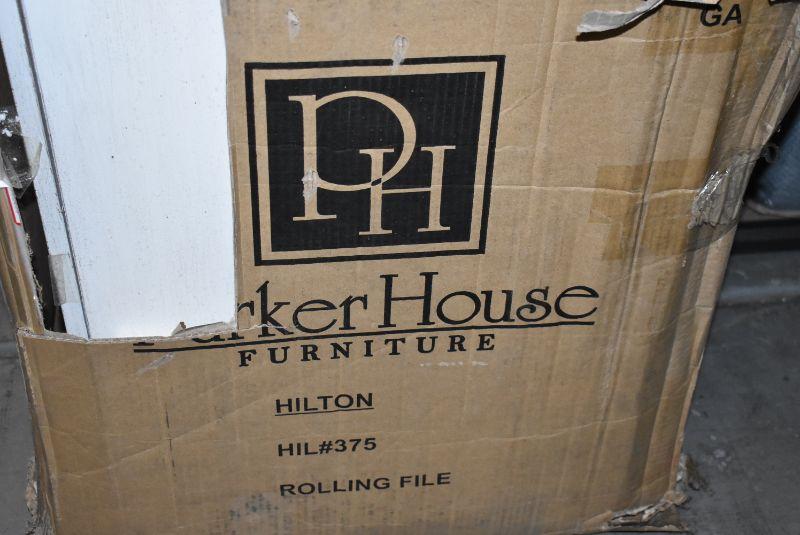 Parker House Rolling File Cabinet, Distressed Cream Wood, HAS ISSUES AS SHOWN. Project piece, $279 Retail