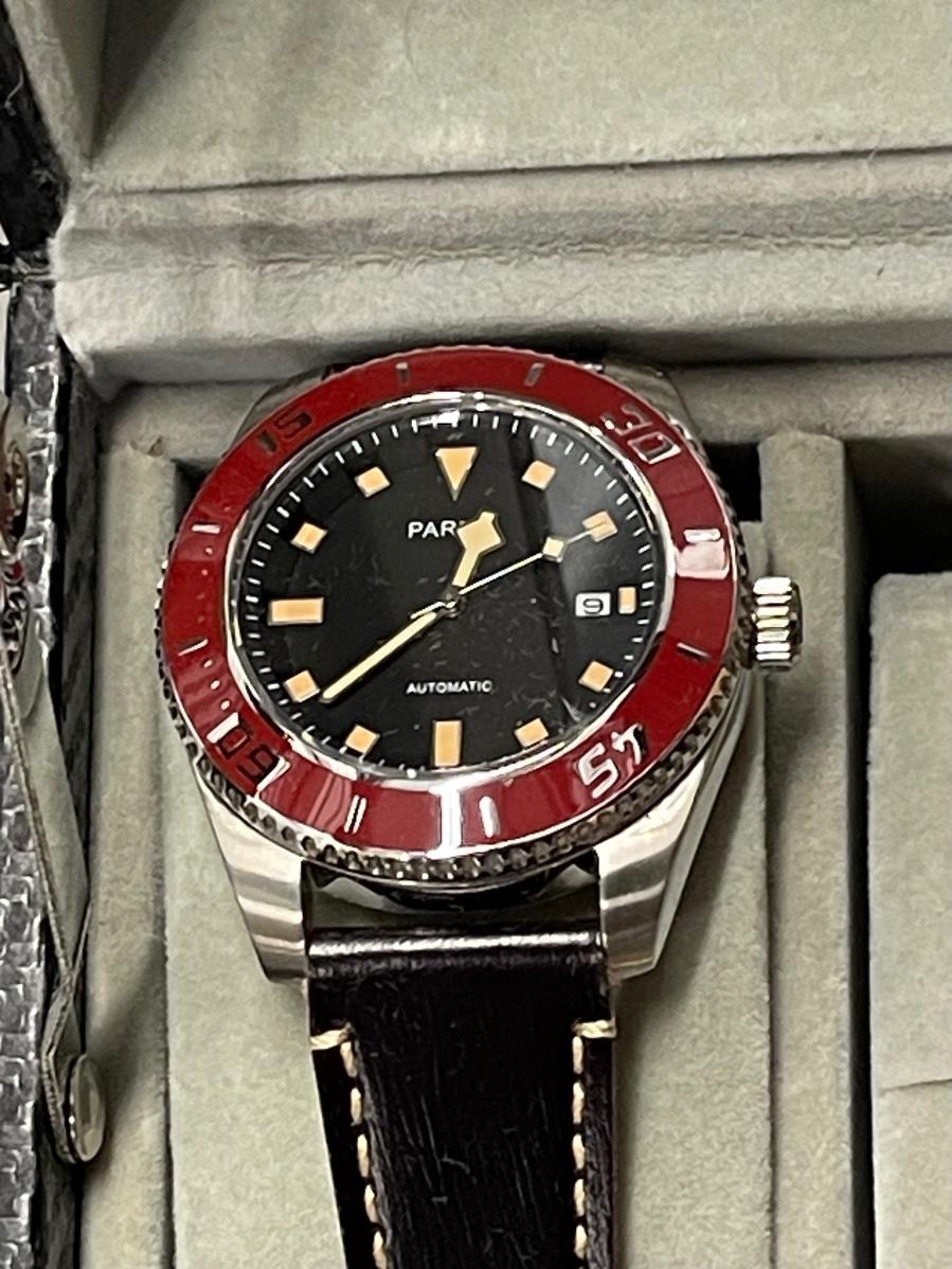 Parnis Red Bezel Automatic Black Dial Watch